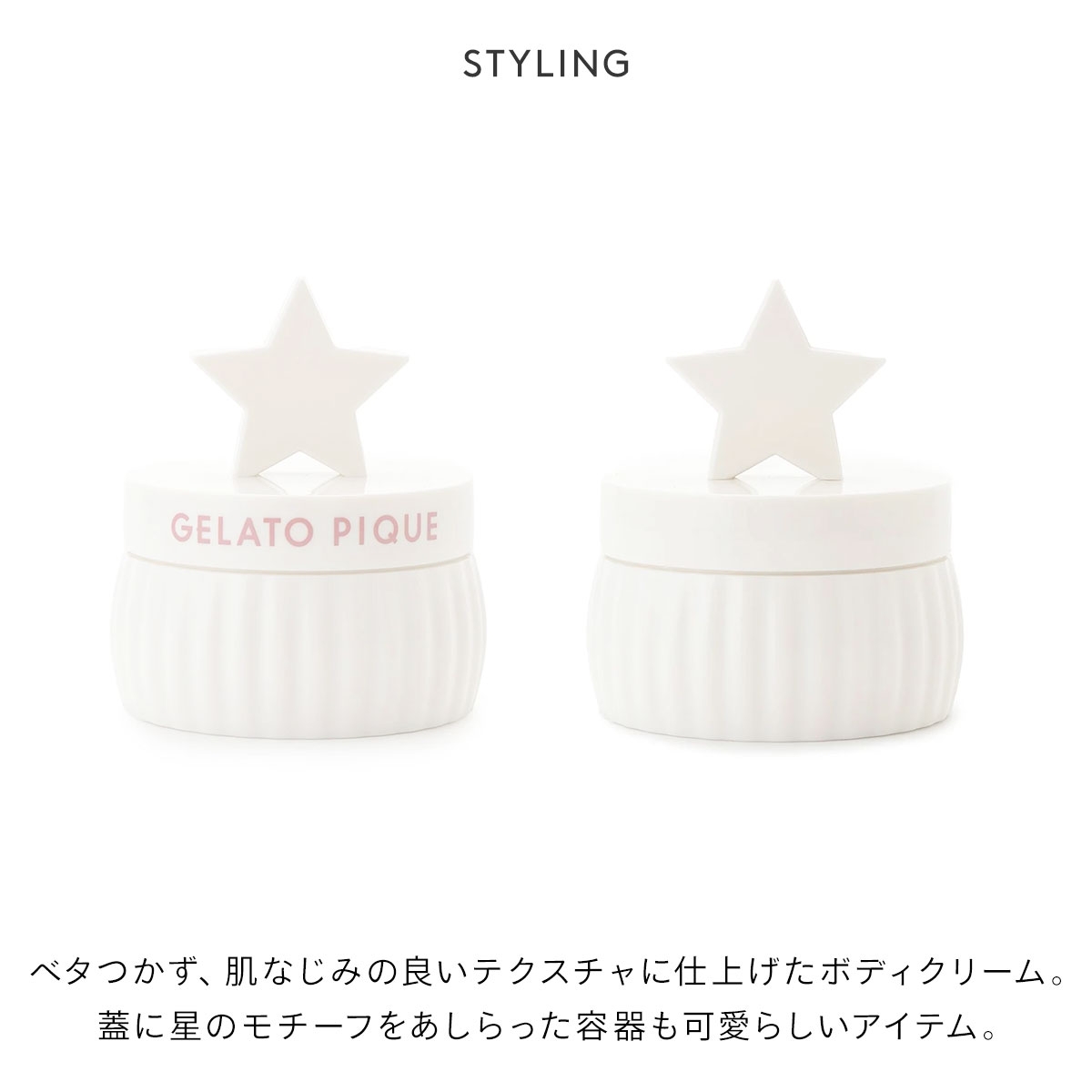蓋に星のモチーフをあしらった容器も可愛らしく、いつもそばに置いておきたくなるアイテムです。