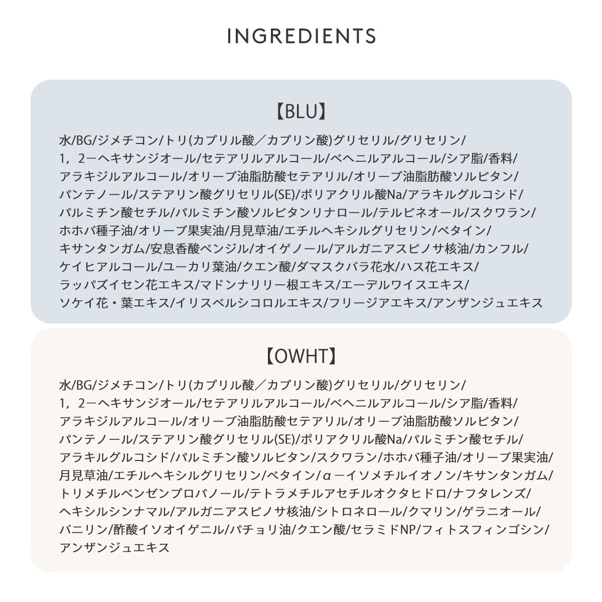 カラーBU-ブルー、OW-オフホワイト