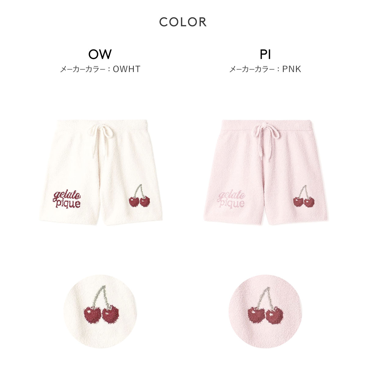 ジェラートピケ レディース ベビモコチェリージャガードショートパンツ ジェラピケ パジャマ ルームウェア gelato pique(OW-オフホワイト-Free)