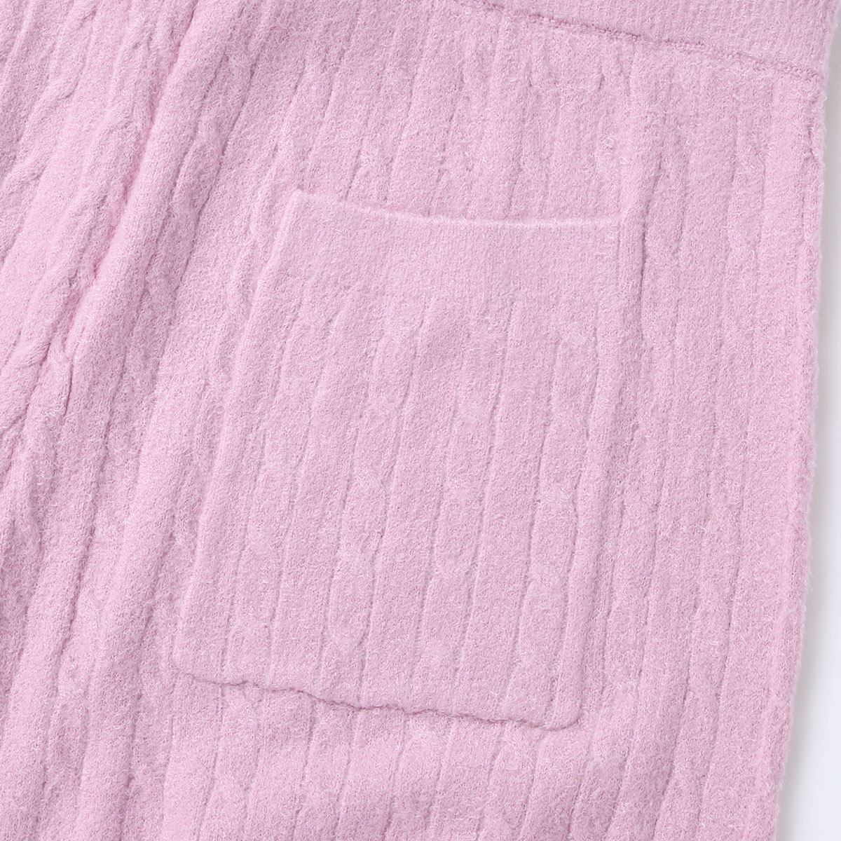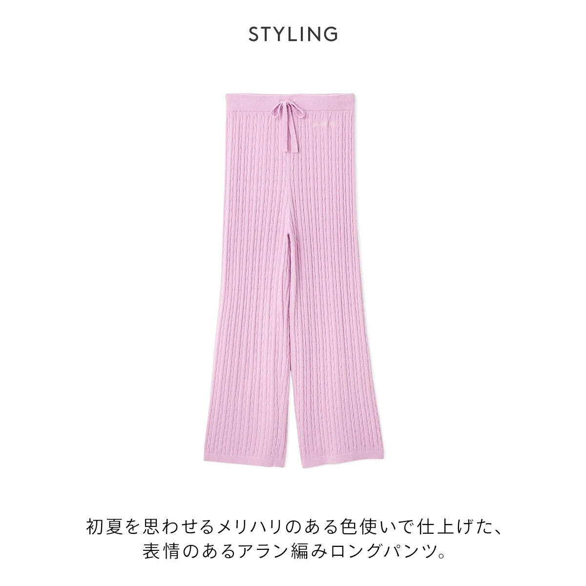 初夏を思わせるメリハリのある色使いで仕上げた、表情のあるアラン編みロングパンツ。