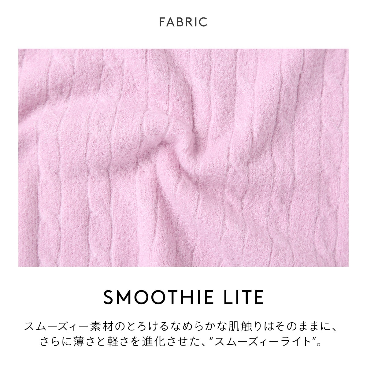 ファブリックは、肌馴染みの良いなめらかな風合いはそのままに、より軽さと薄さを追求したスムーズィーライト素材。極薄仕立てによるライトな着心地とドライな質感で、暑い夏にも心地よくご着用いただけます。