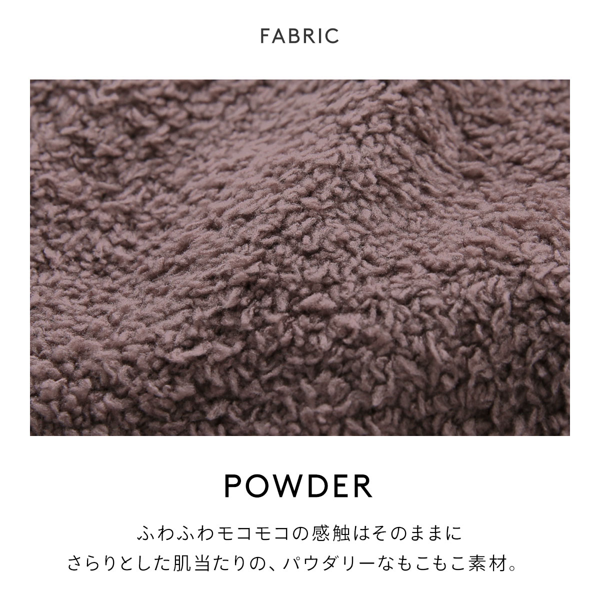 身生地は、さらさらとした質感と軽やかなモコモコ感を兼ね備えたパウダー素材。吸水速乾性がありムレにくく、いつでも快適な着心地です。