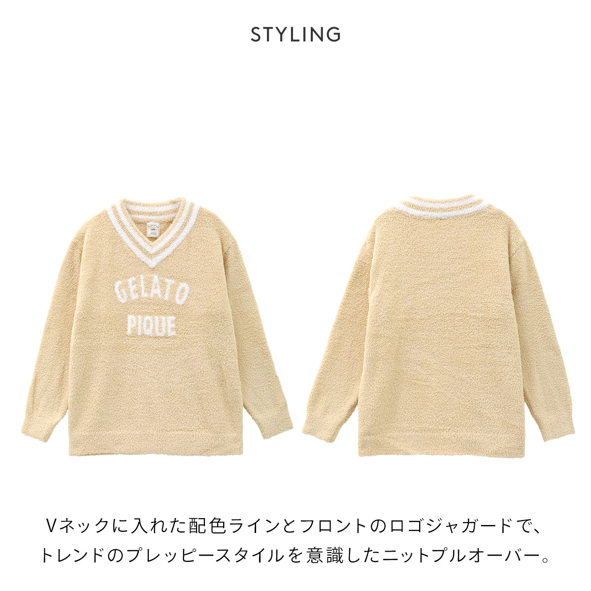 ジェラートピケ★プレッピーなVネックロゴプルオーバー