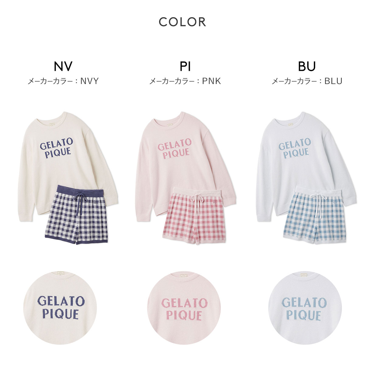 ジェラートピケ レディース WhiteDay ロゴプルオーバー&チェックショートパンツセット ジェラピケ ルームウェア gelato pique ホワイトデー(BU-ブルー-Free)