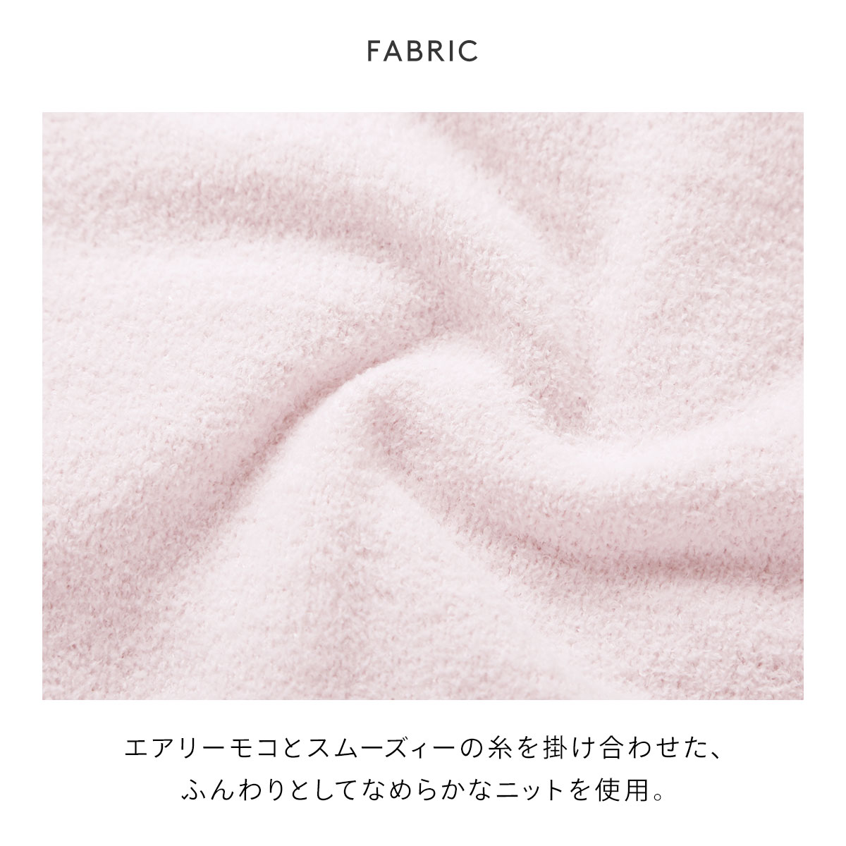 身生地には、エアリーモコとスムーズィーの糸を掛け合わせた、ふんわりとしてなめらかなニットを使用しています。