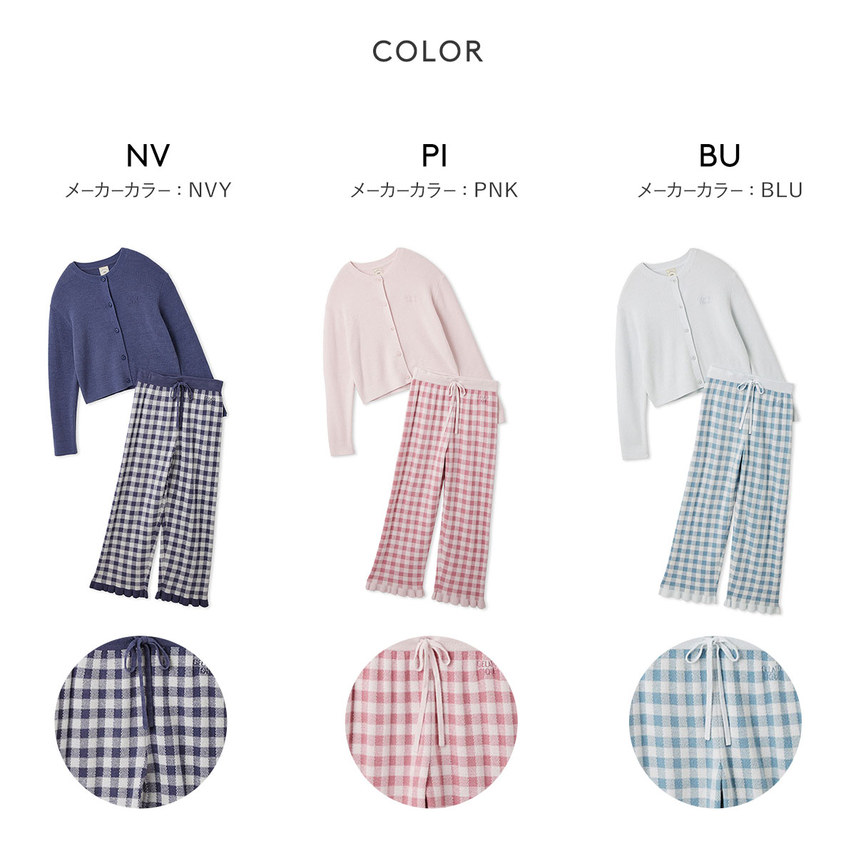 カラーNV-ネイビー、PI-ピンク、BU-ブルー