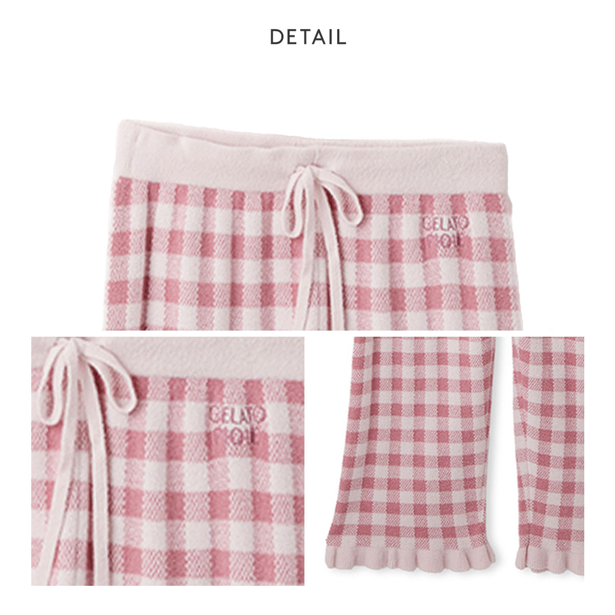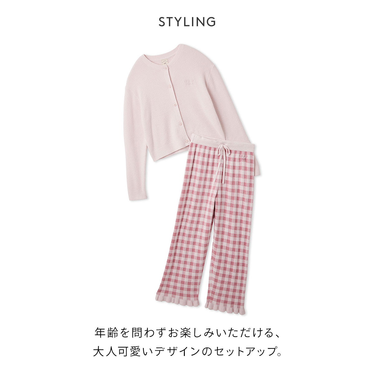 ジェラートピケ レディース WhiteDay リブカーディガン&チェックロングパンツセット 上下 ジェラピケ ルームウェア gelato pique ホワイトデー(PI-ピンク-Free)
