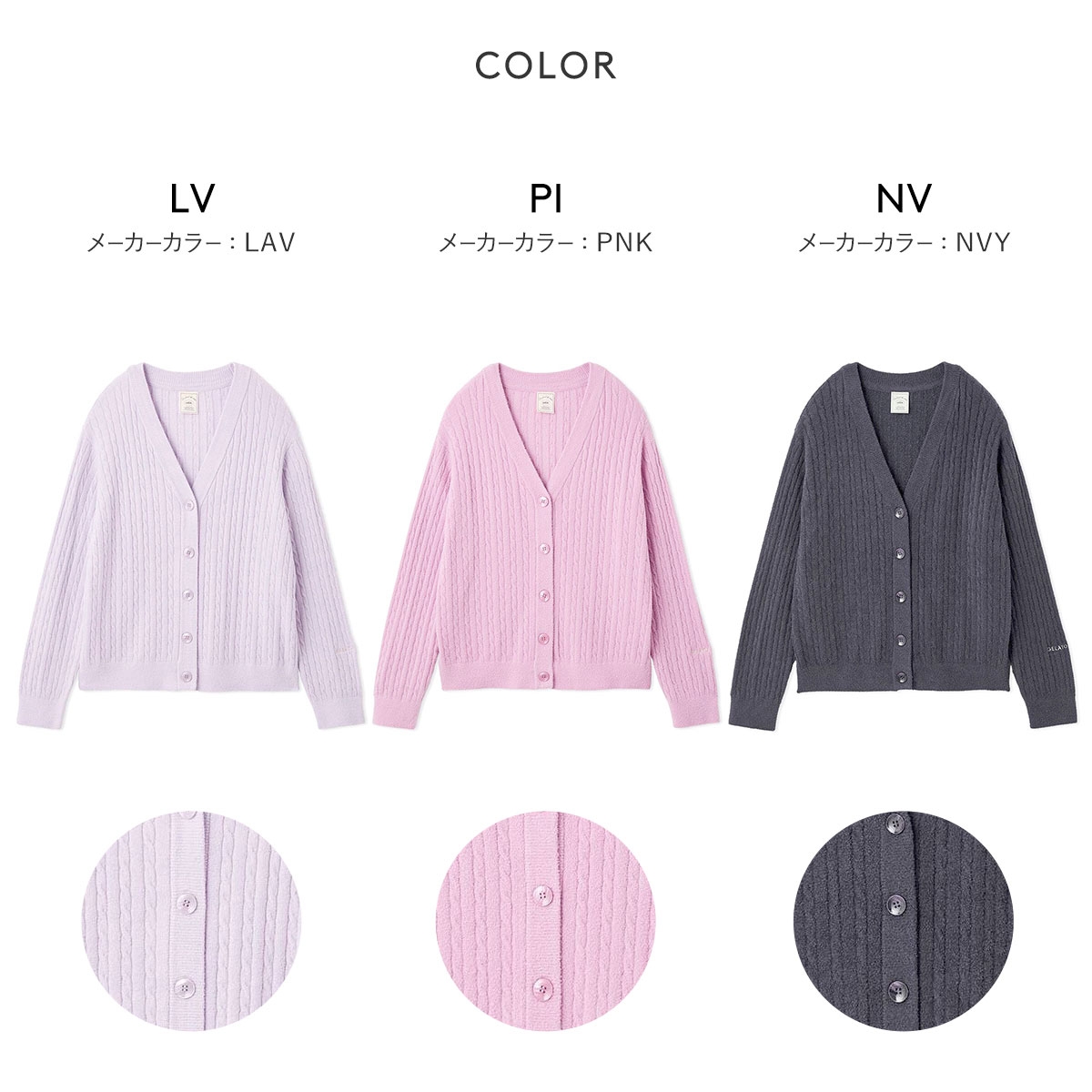 カラーLV-ラベンダー、PI-ピンク、NV-ネイビー
