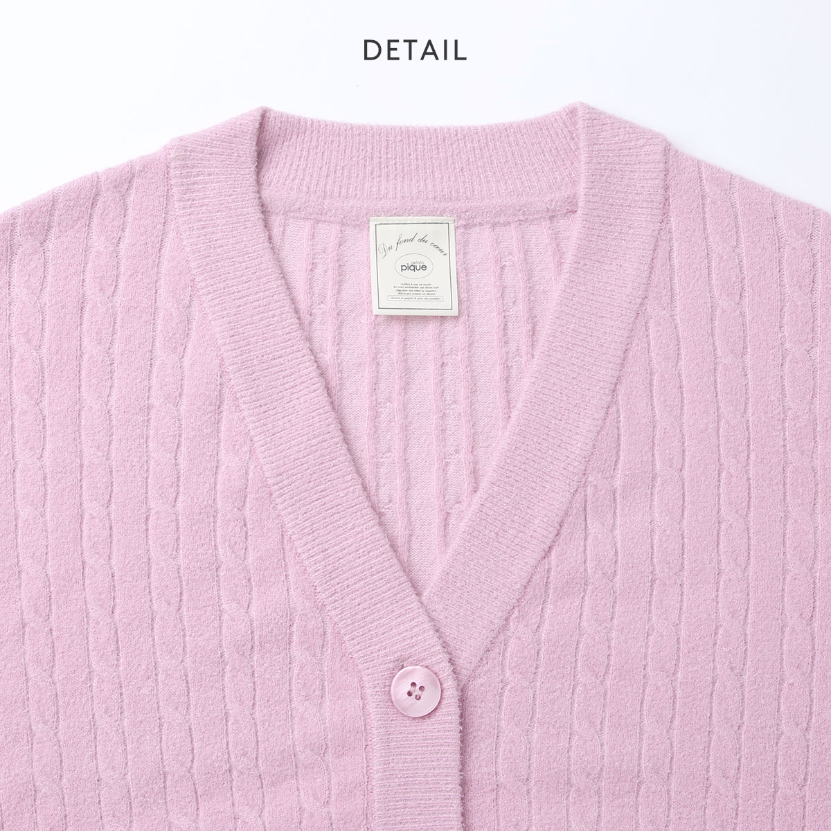 ジェラートピケ★大人見えするアラン編みVネックカーディガン