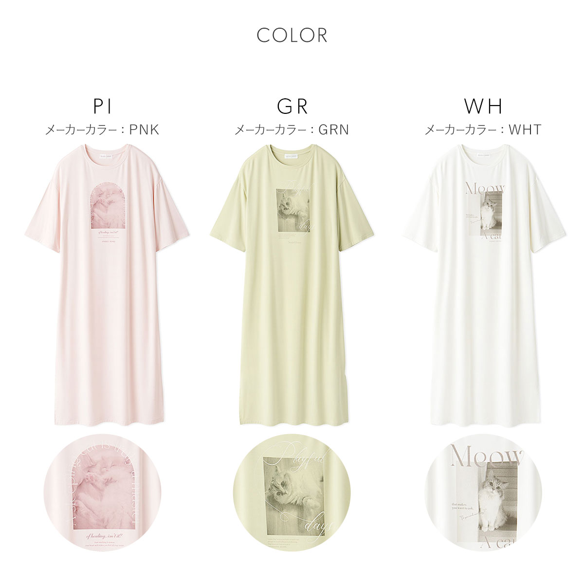 | カラー | PI-ピンク、GR-グリーン、WH-ホワイト |