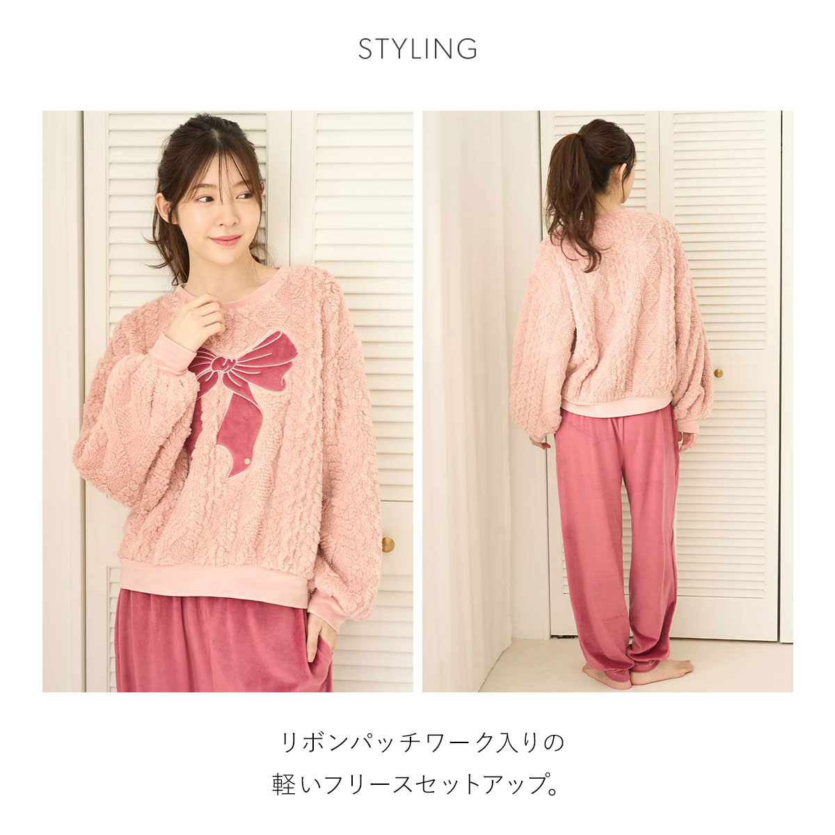 とろけmoco ルームウェア パジャマ 上下セット 長袖 もこもこ あったか 秋冬 リボン