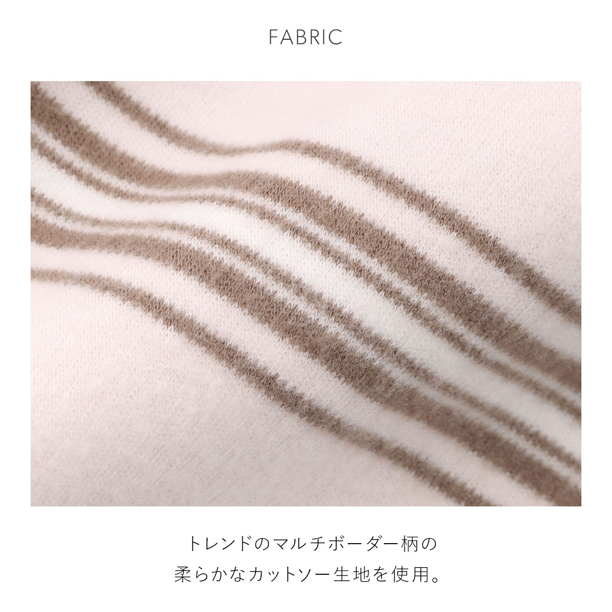 トレンドのマルチボーダー柄の柔らかなカットソー生地を使用したセットアップ。