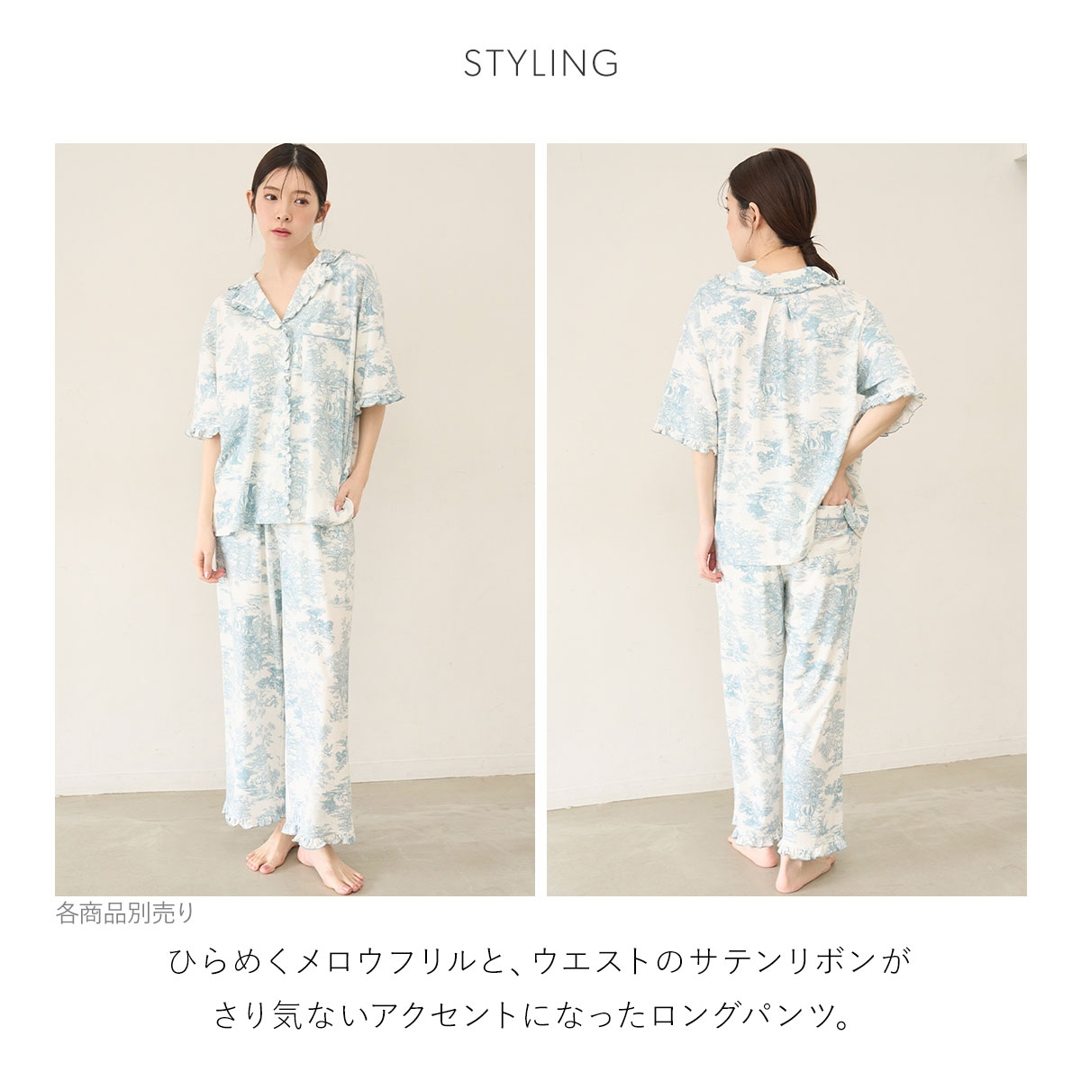 ひらめくメロウフリルと、ウエストのサテンリボンがさり気ないアクセントになっています。