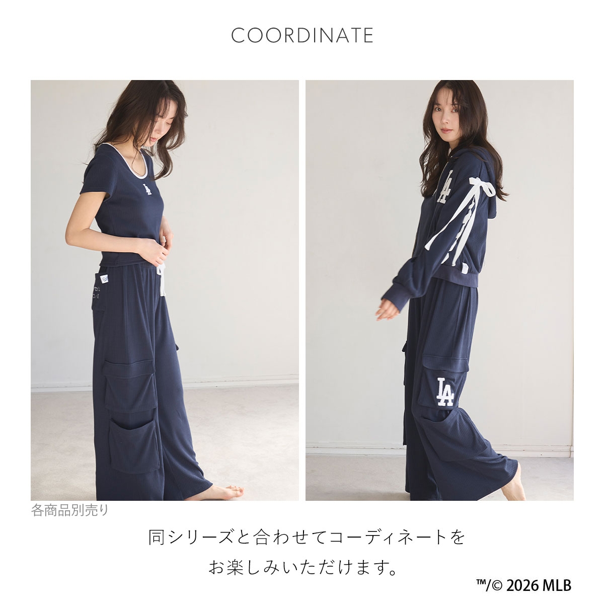 各球団のロゴをアクセントにした、スポーティかつパワフルなデザインを、SNIDEL HOMEらしいトレンド感のあるルームウェアにアレンジしています。
