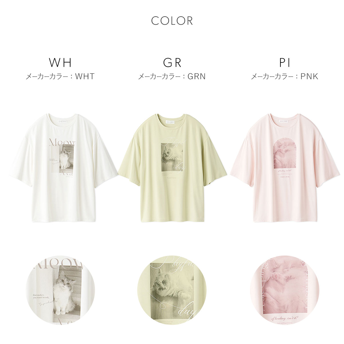 カラーWH-ホワイト、GR-グリーン、PI-ピンク