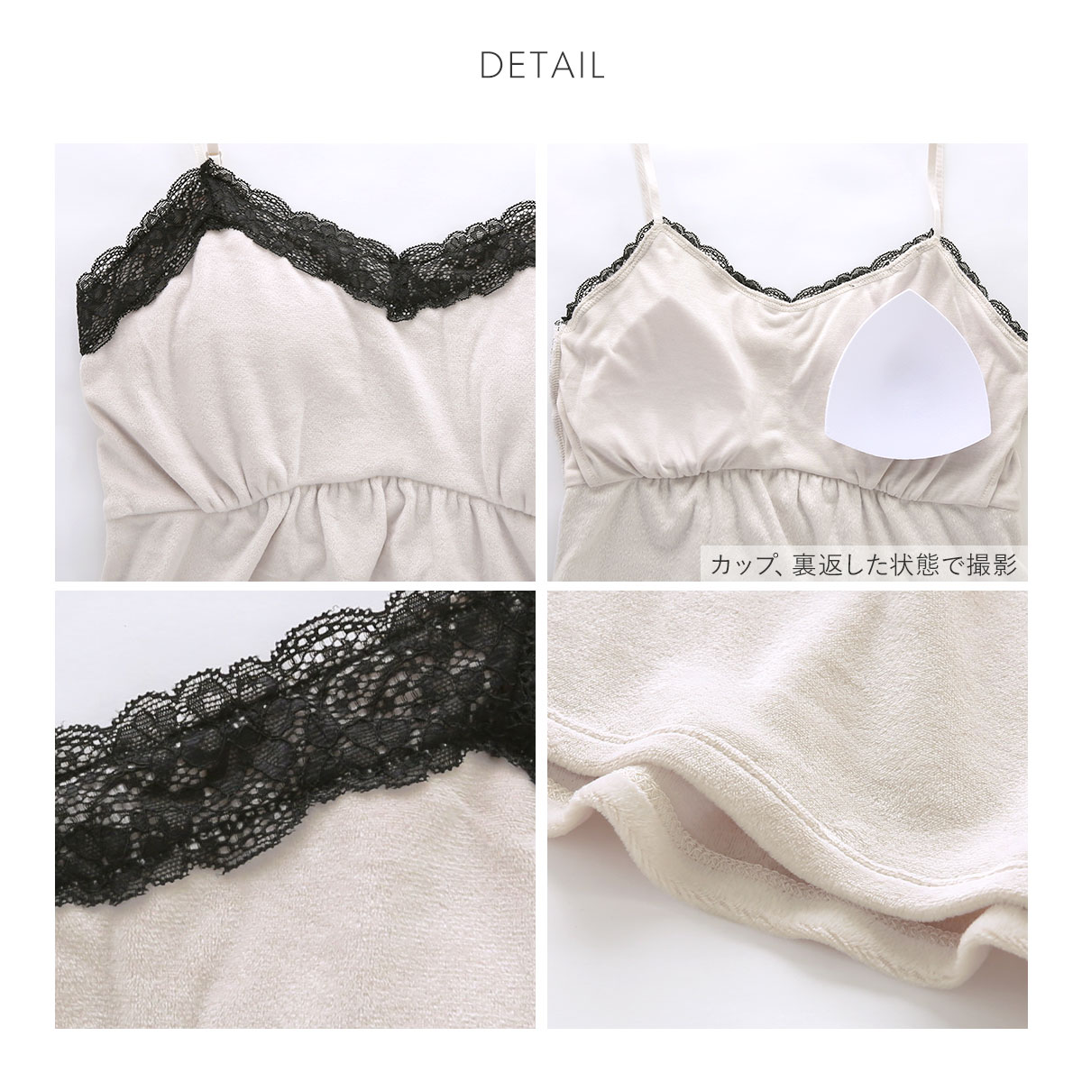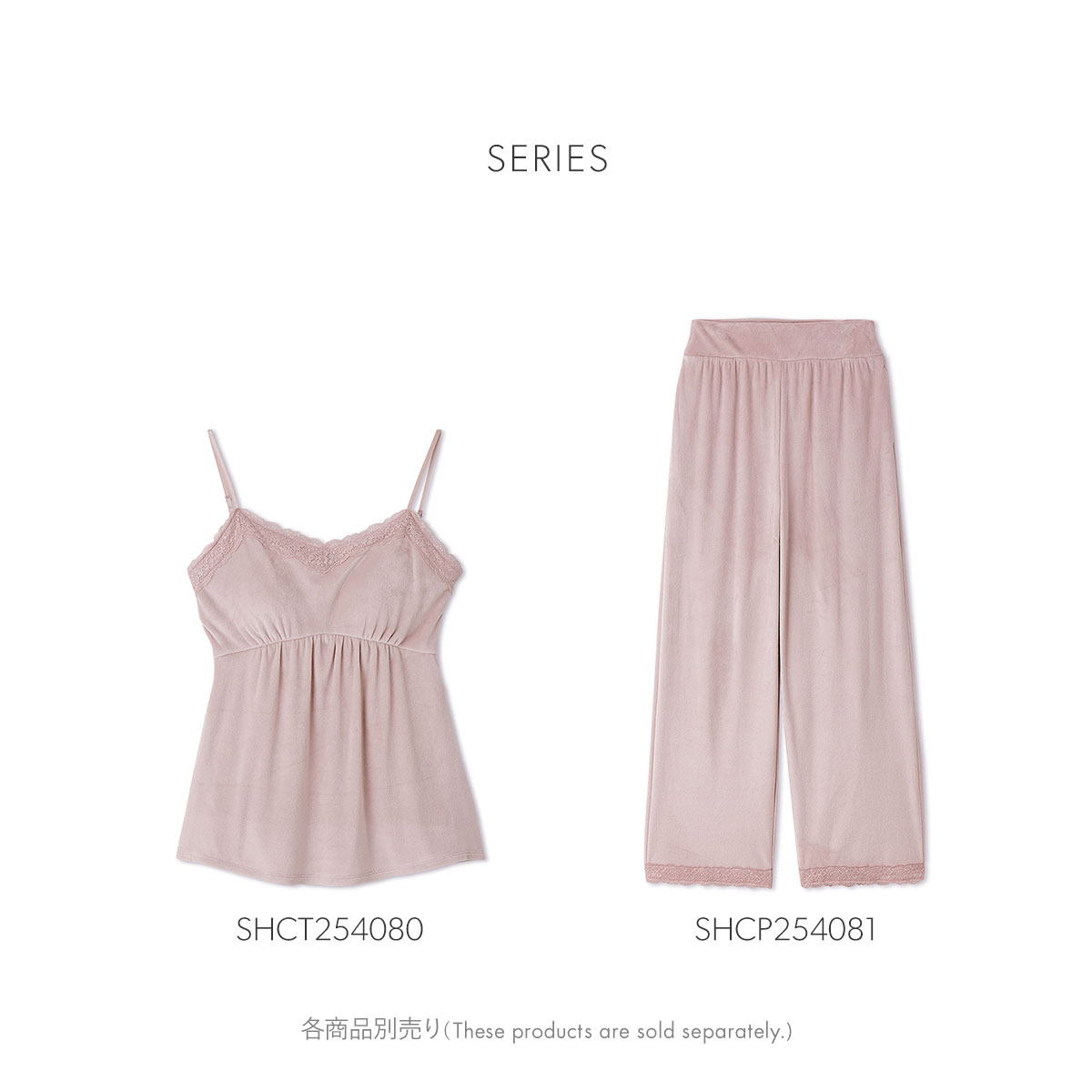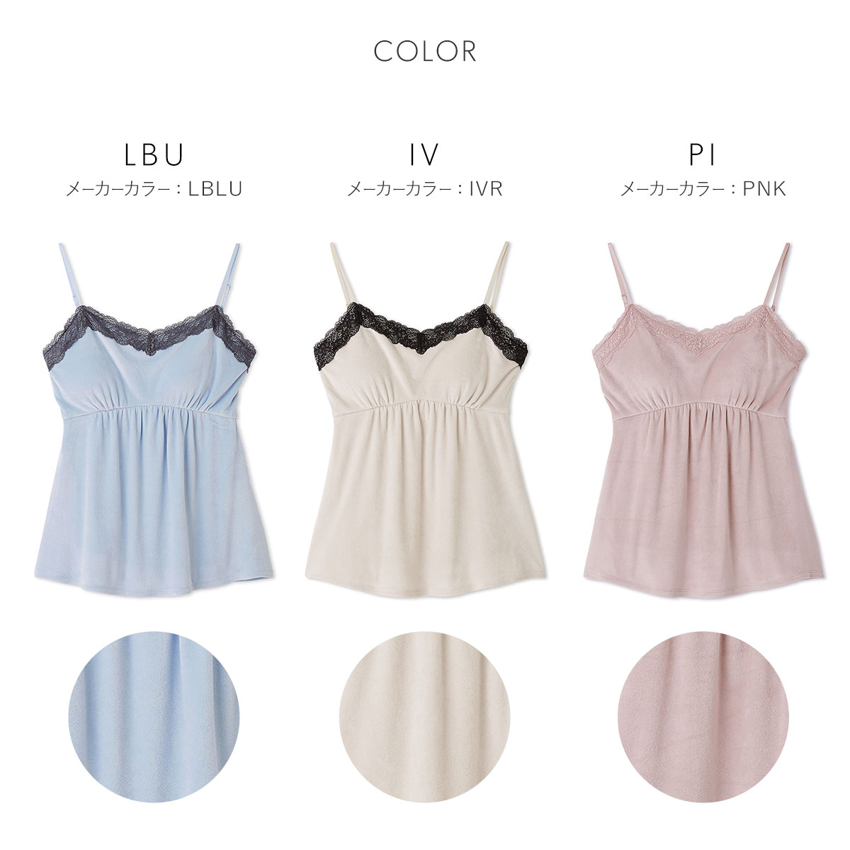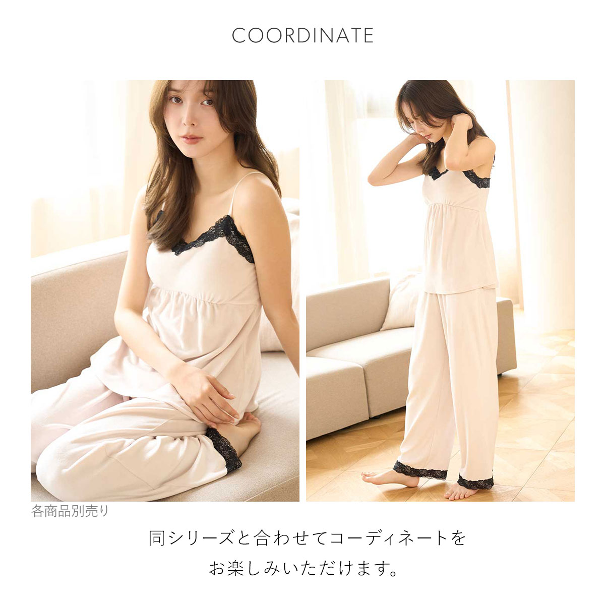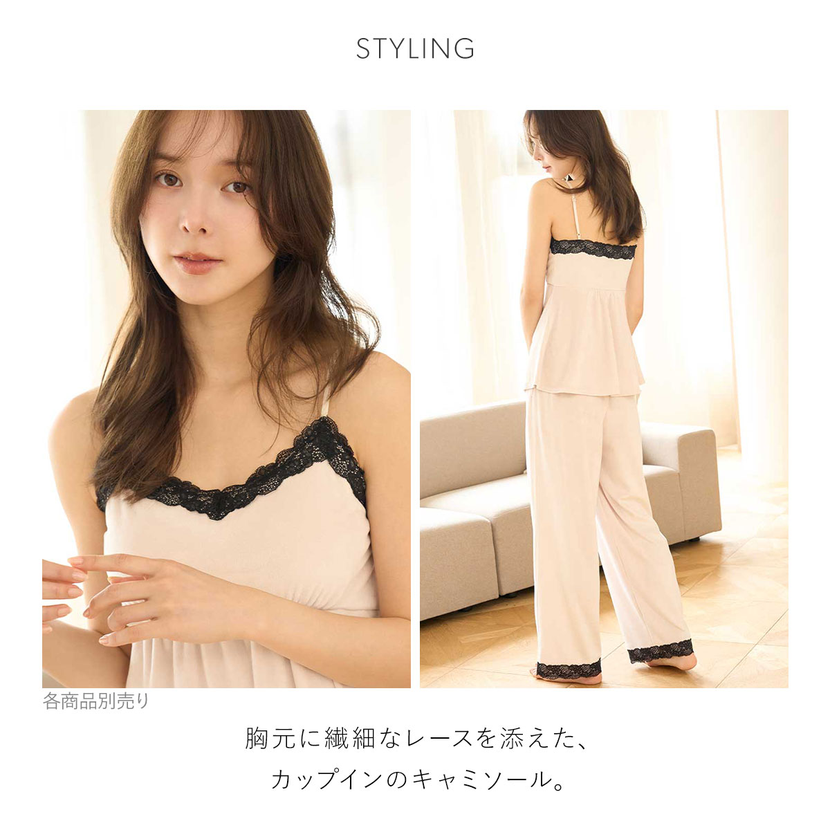 胸元に繊細なレースを添えた、カップインのキャミソール。バスト下のギャザー切り替えが、ふんわりとしたフェミニンなシルエットを演出します。ストラップはアジャスター付き。