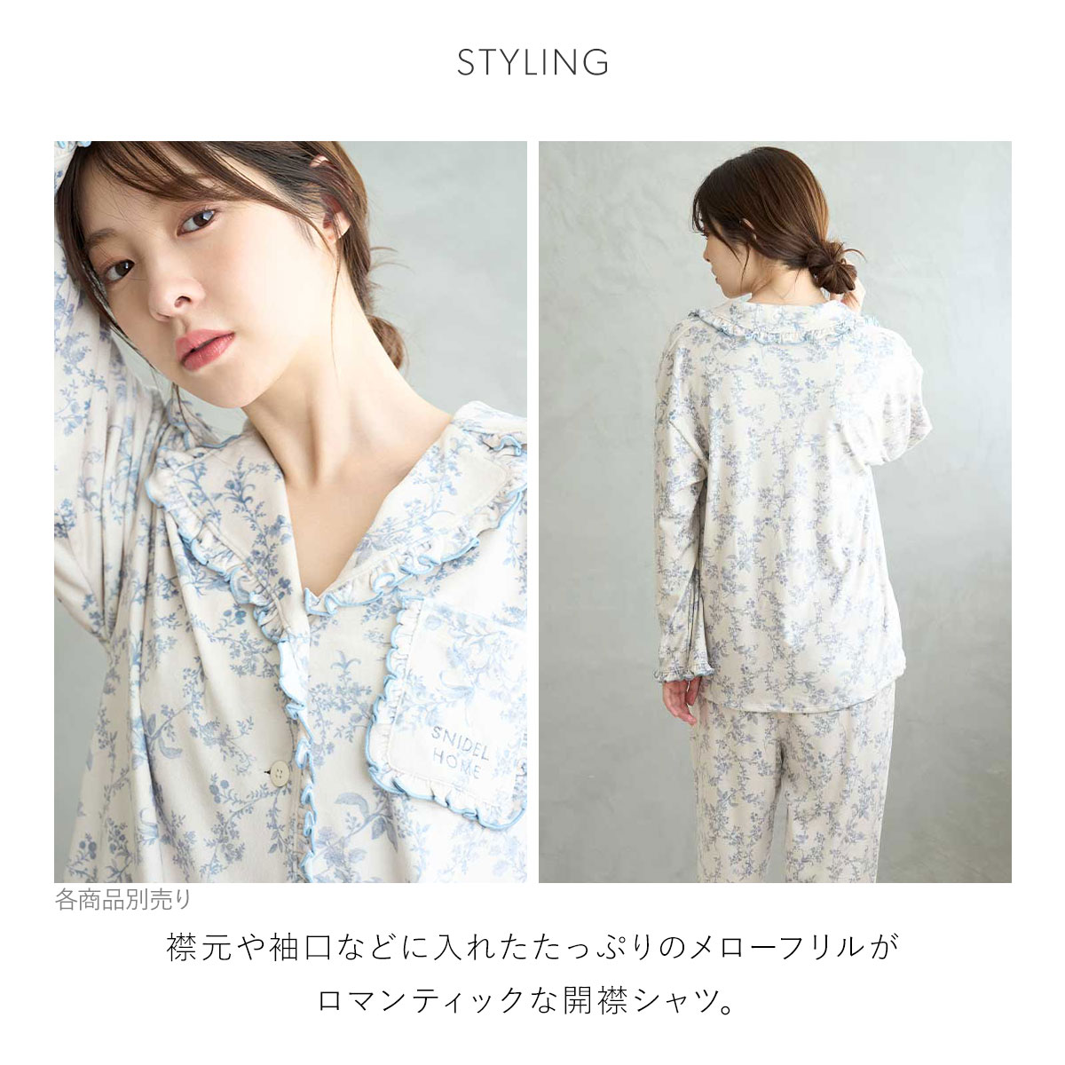 スナイデルホーム★フリルで華やぐシルキーフリースの開襟シャツ