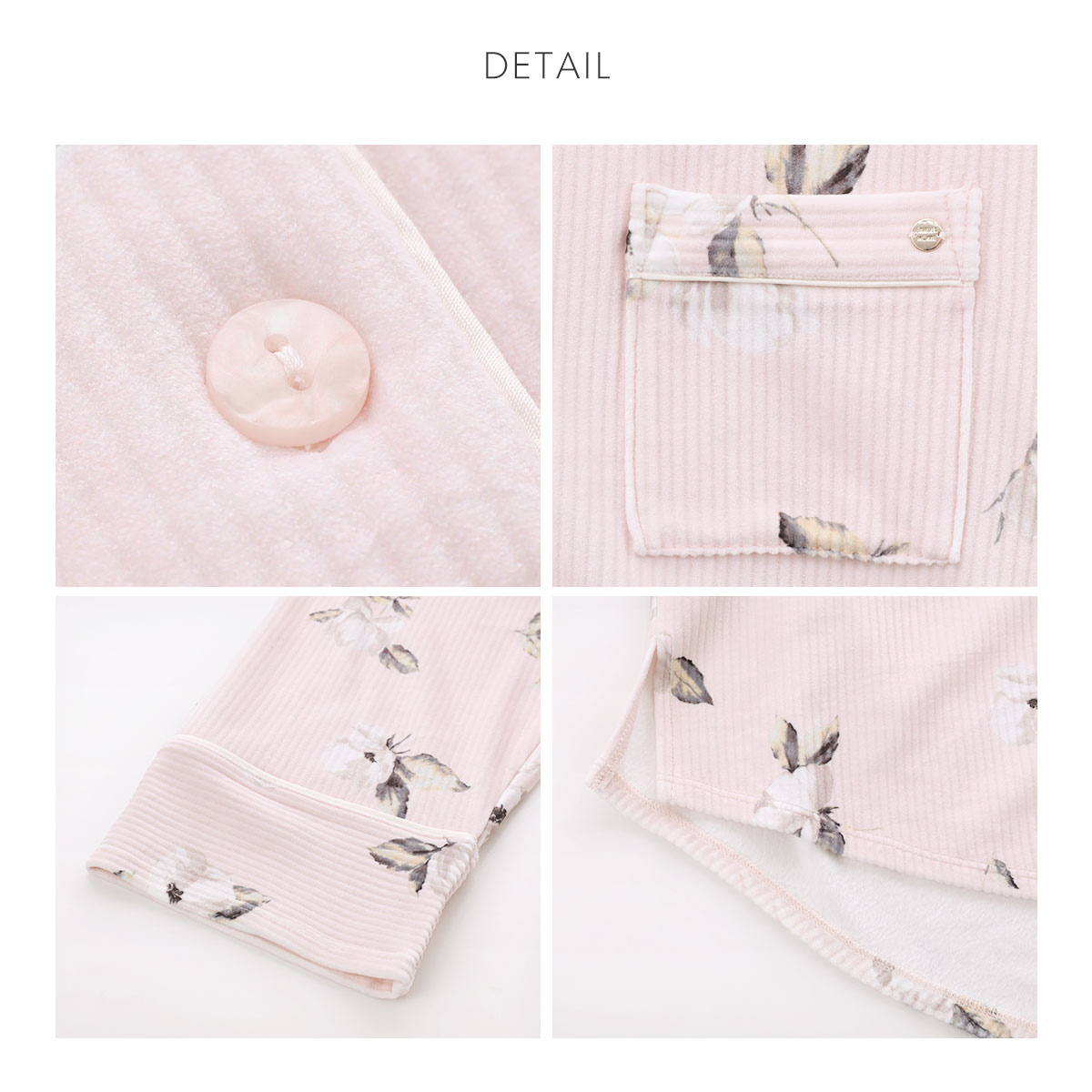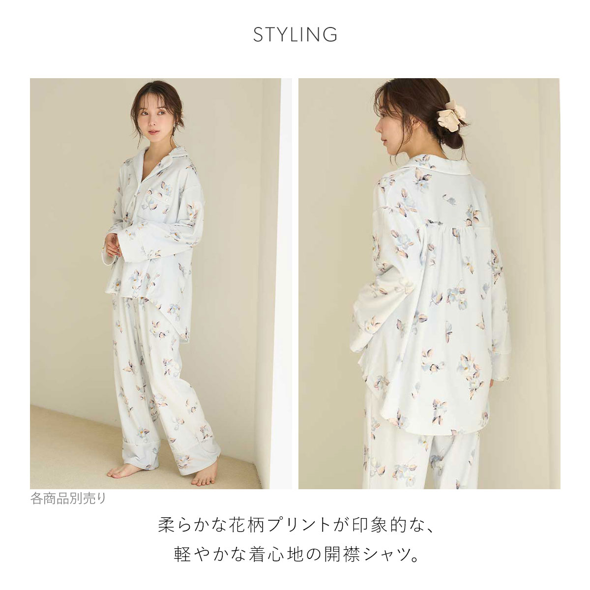 スナイデルホーム★軽い着心地で温かいリブフリースの花柄シャツ