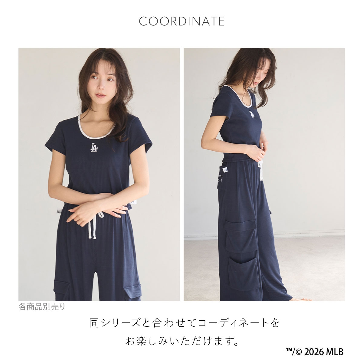 各球団のロゴをアクセントにした、スポーティかつパワフルなデザインを、SNIDEL HOMEらしいトレンド感のあるルームウェアにアレンジしています。