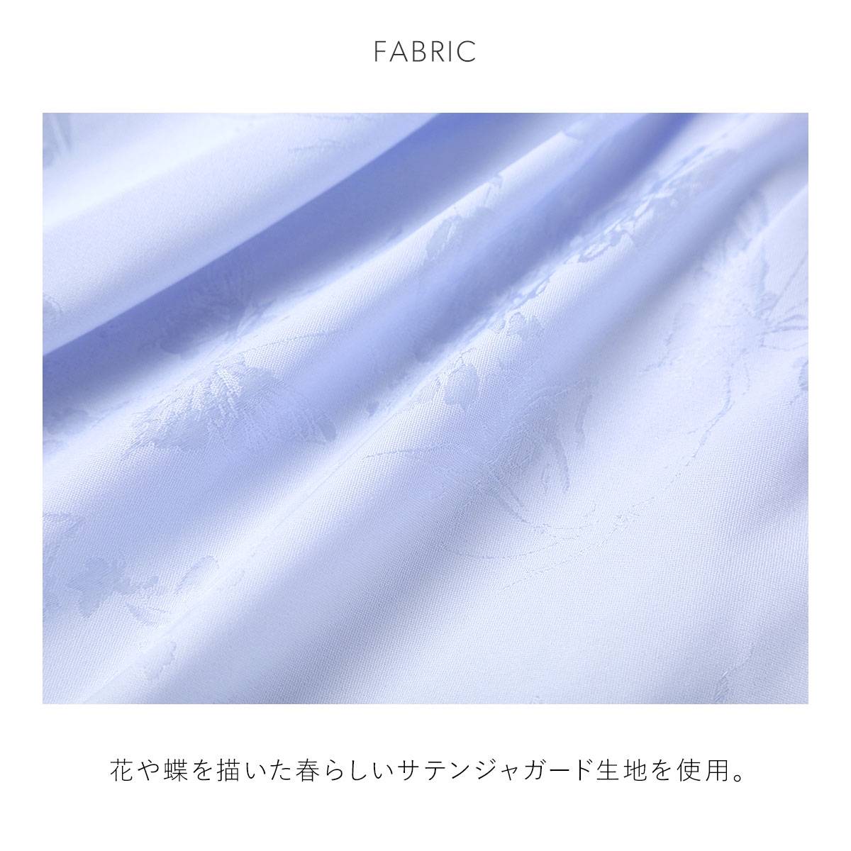 花や蝶を描いた春らしいサテンジャガード生地に、ドット柄など3種類のプリント柄を施したシリーズ。