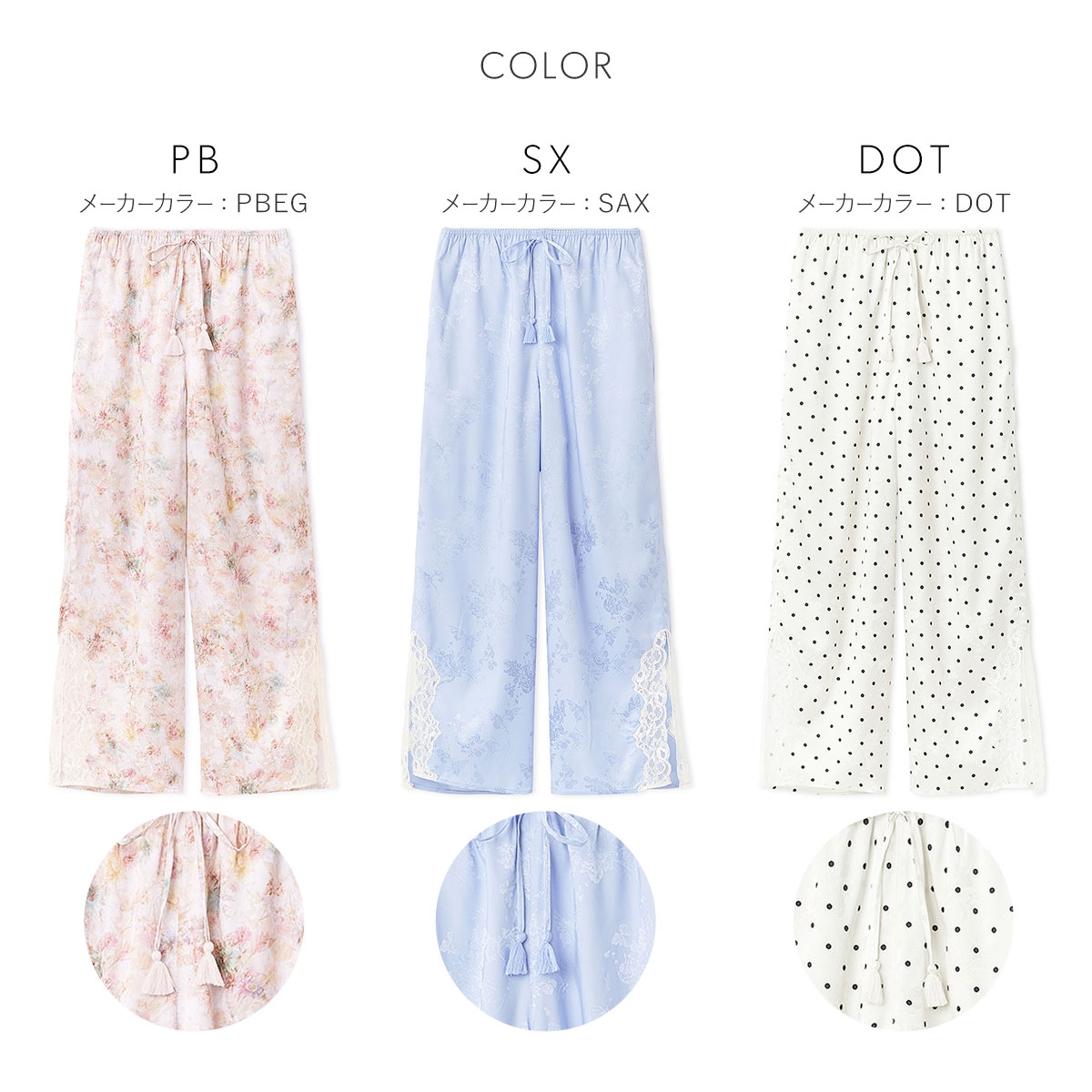 カラーPB-ピンクベージュ、SX-サックス、DOT-ドット