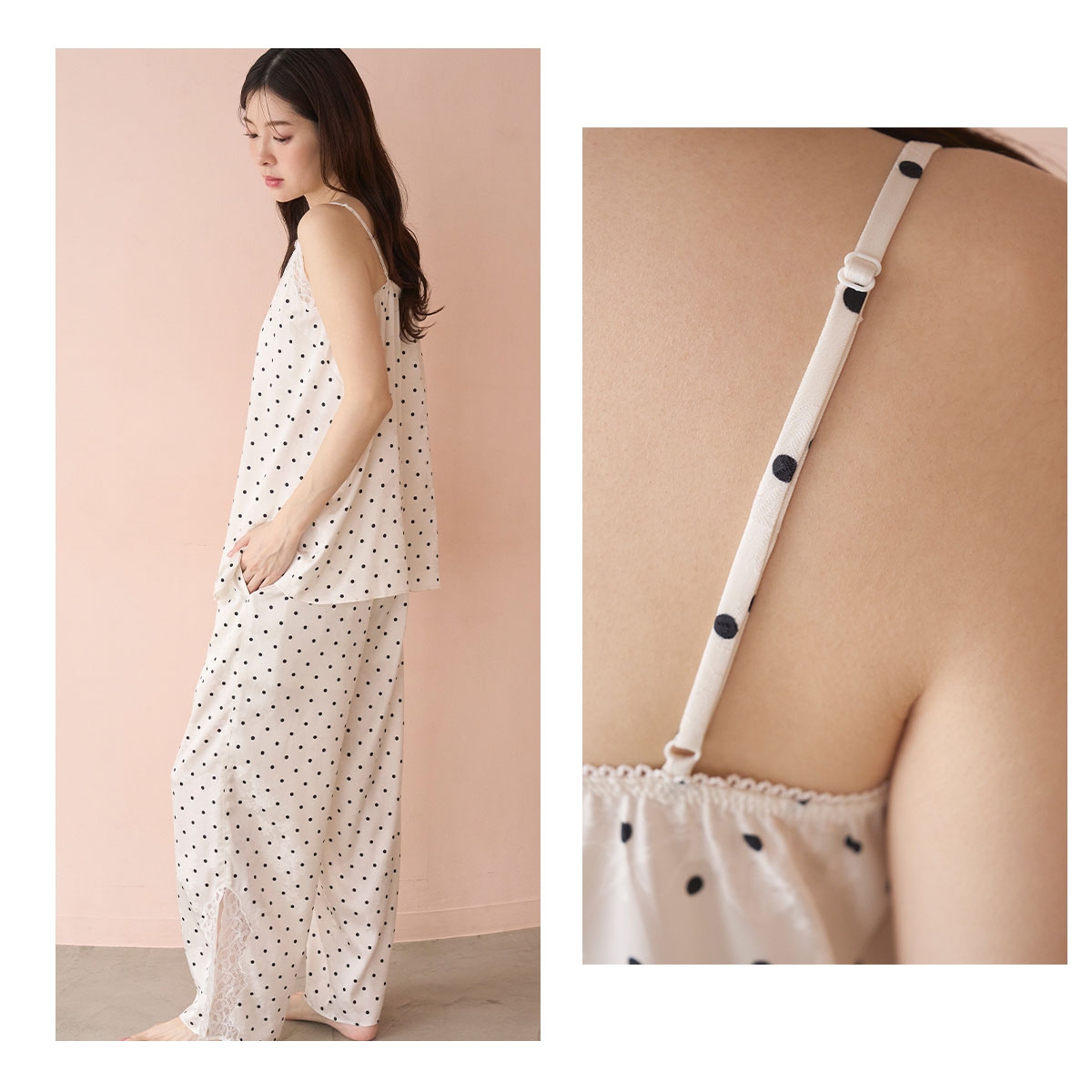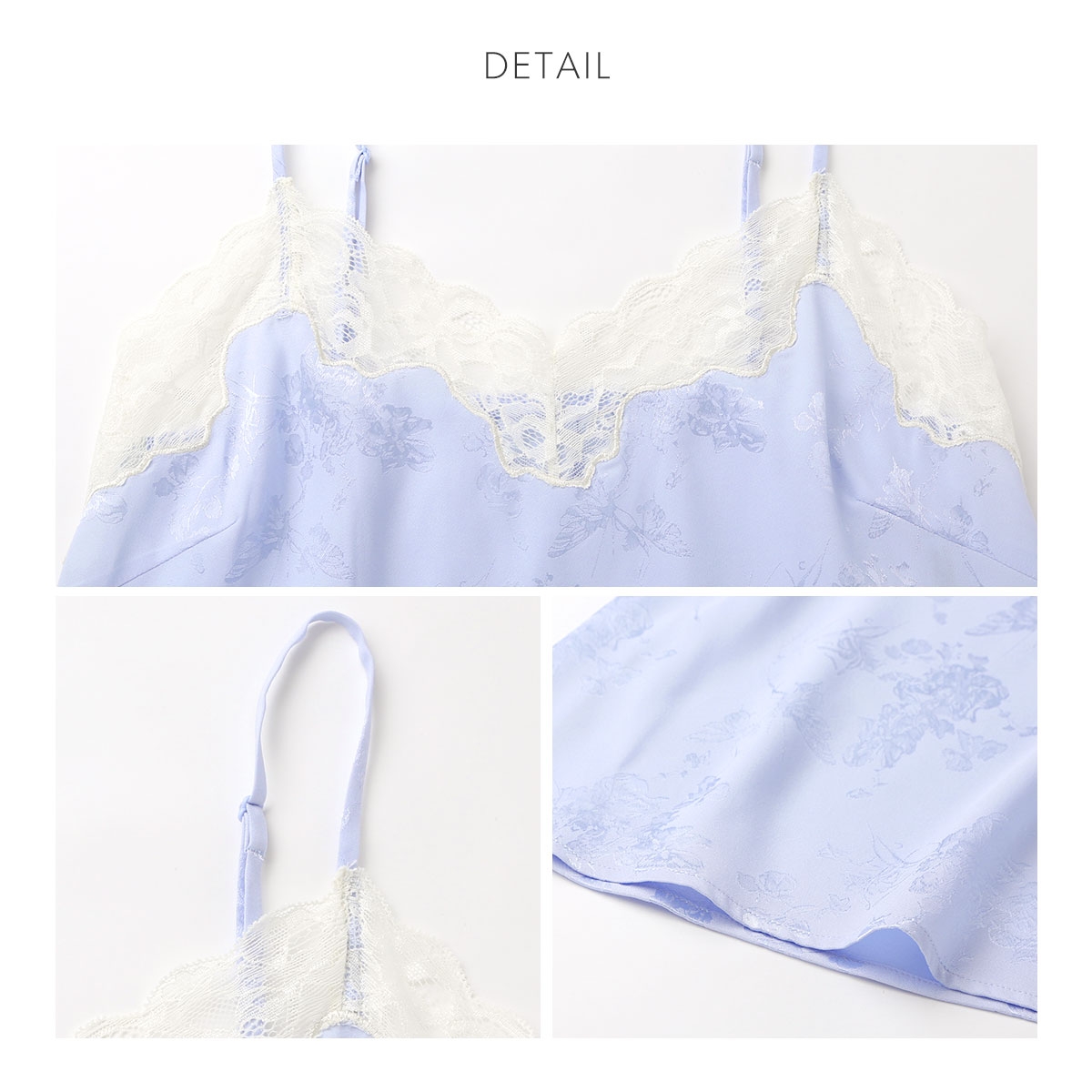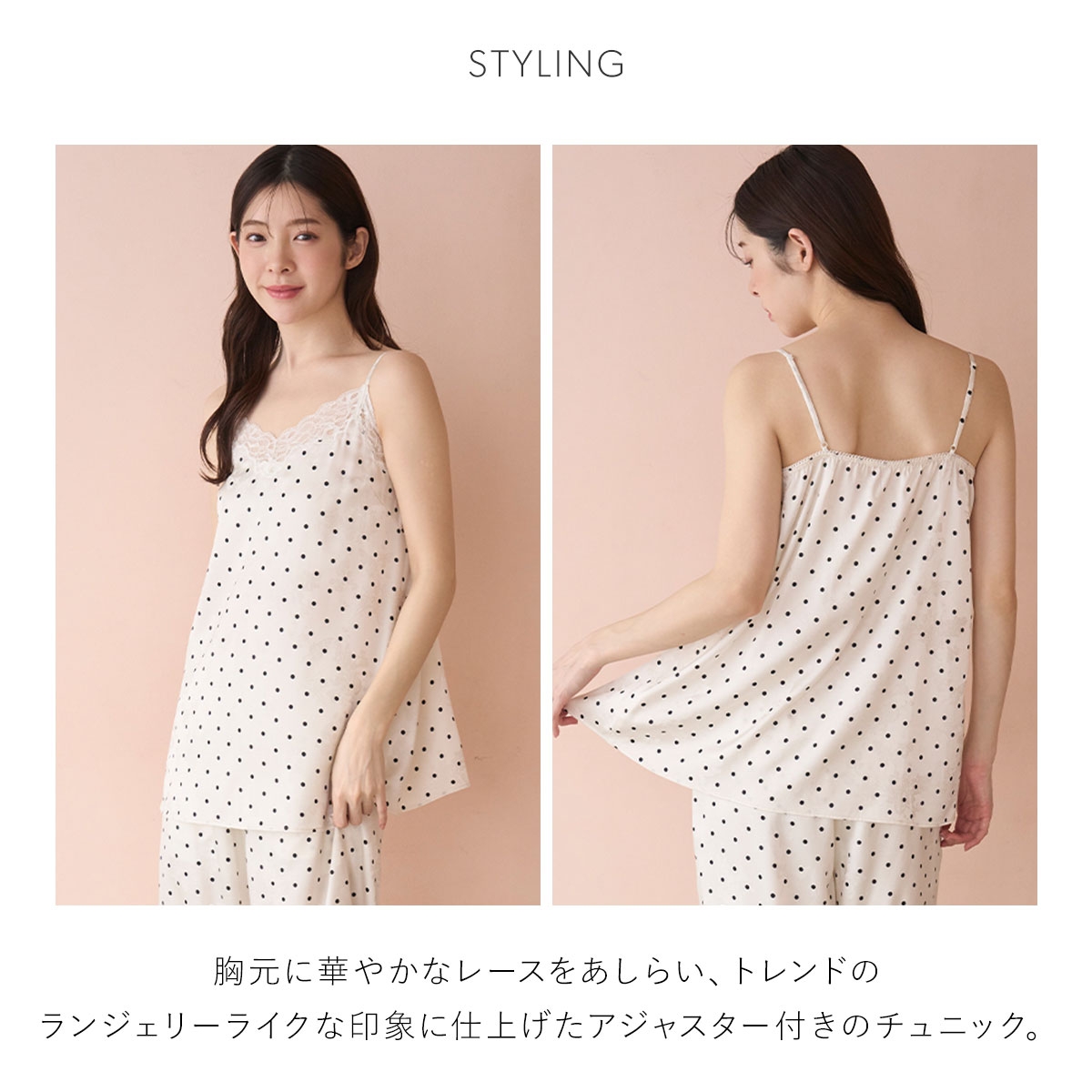 こちらは、胸元に華やかなレースをあしらい、トレンドのランジェリーライクな印象に仕上げたアジャスター付きのチュニックです。