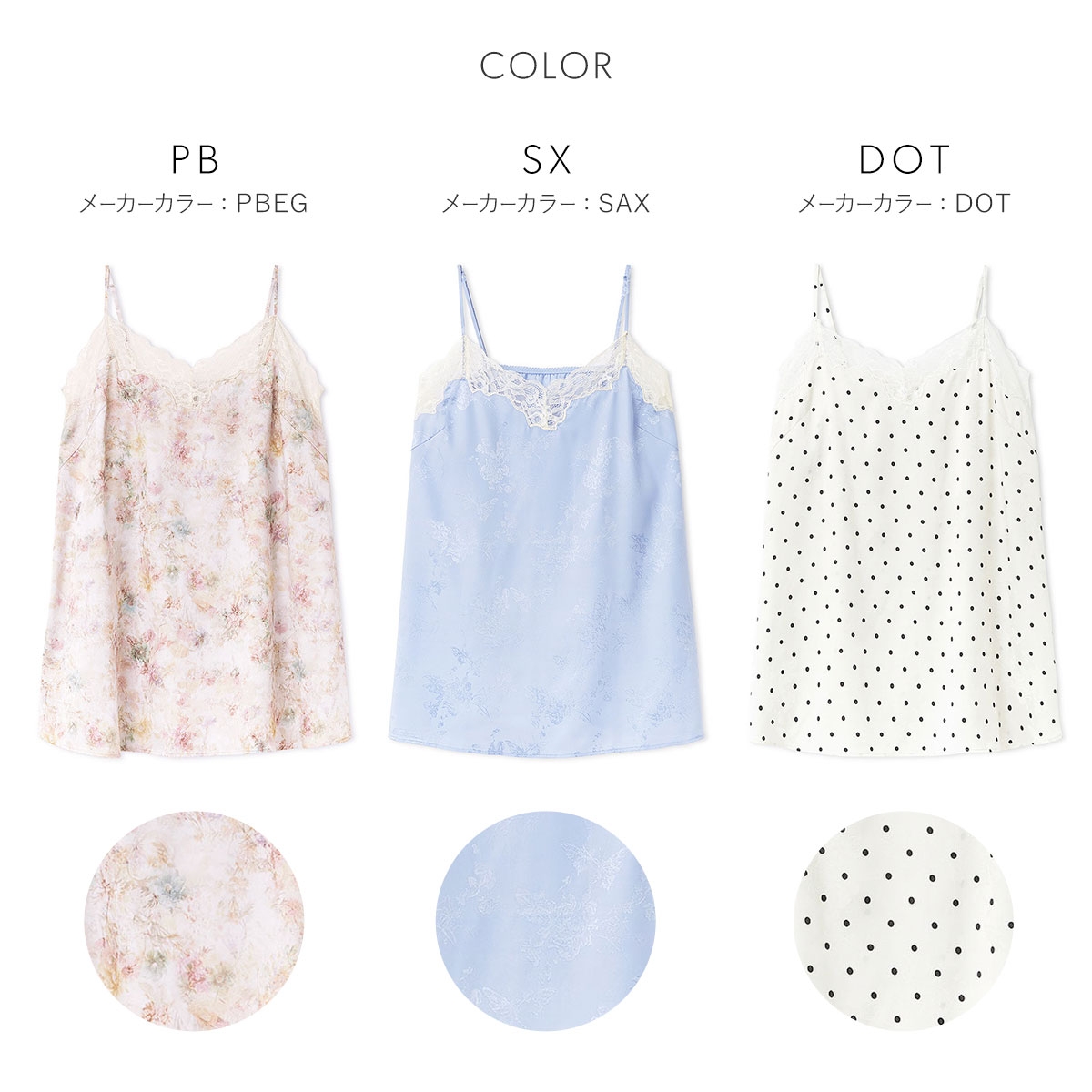 カラーPB-ピンクベージュ、SX-サックス、DOT-ドット