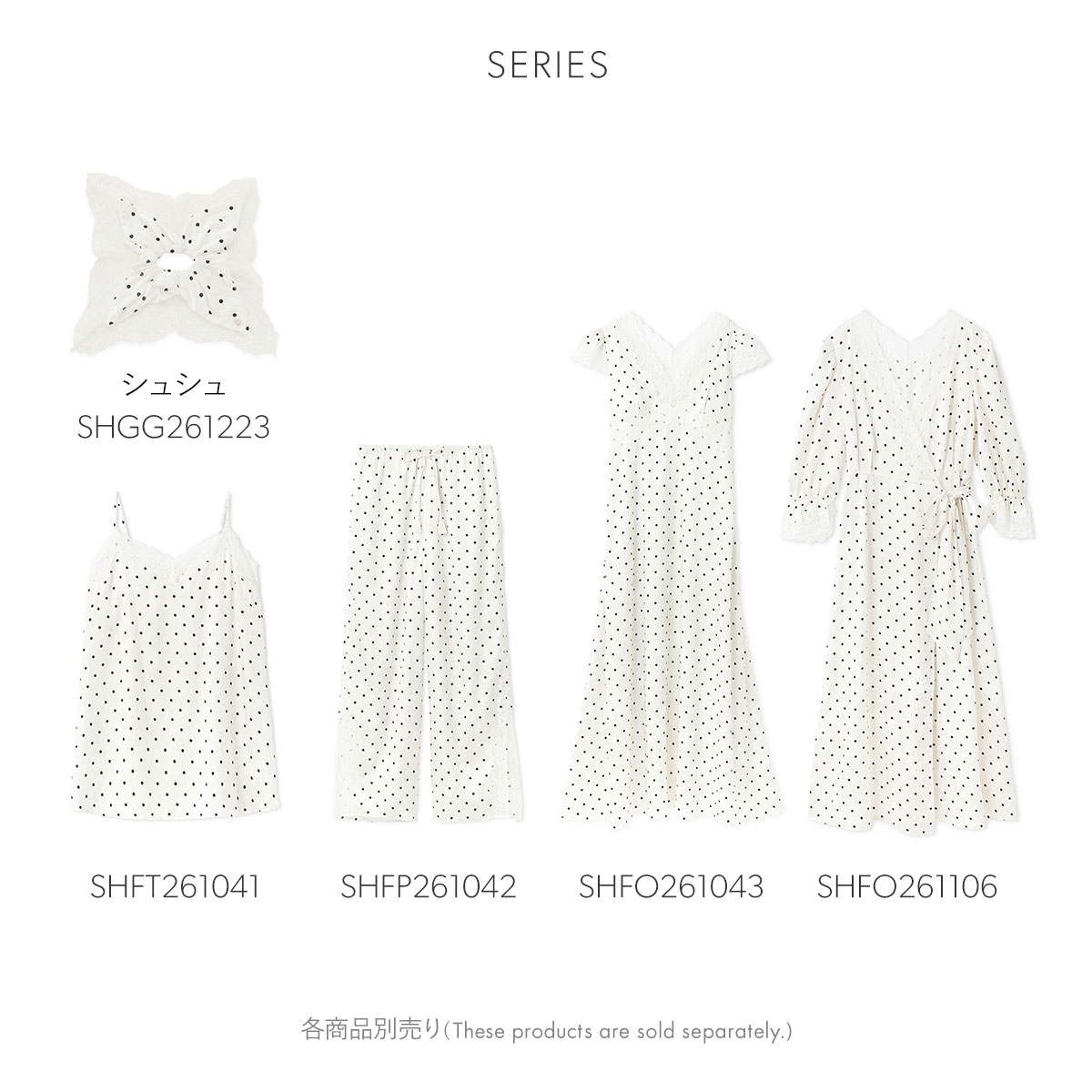 花や蝶を描いた春らしいサテンジャガード生地に、ドット柄など3種類のプリント柄を施したシリーズ。