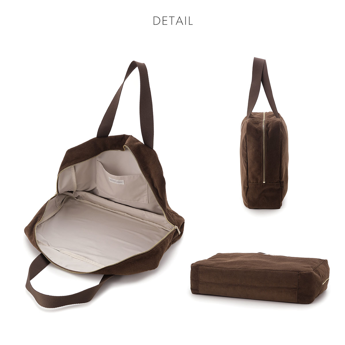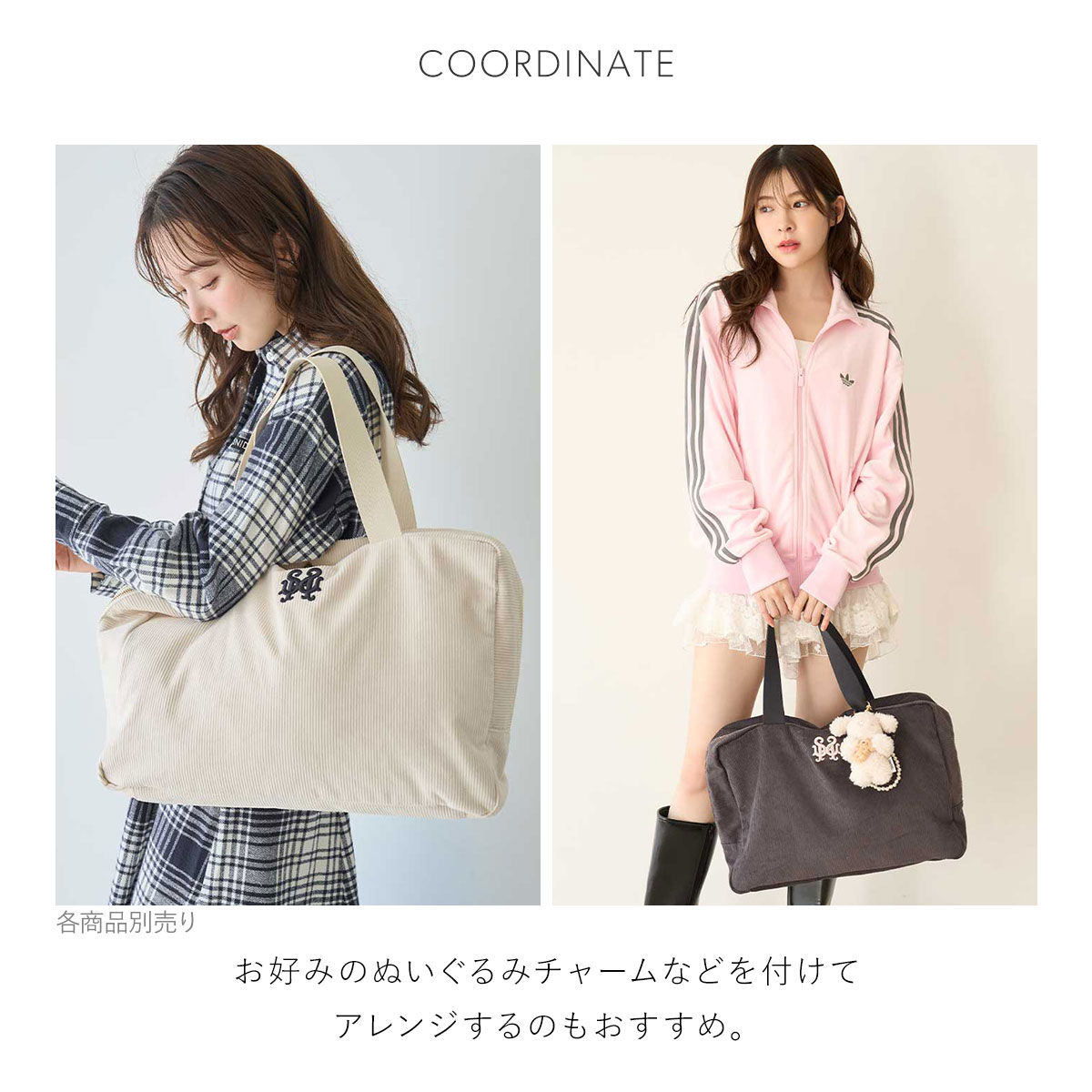 秋冬シーズンに似合う、ソフトなコーデュロイ素材を使用したビッグなボストンバッグ。