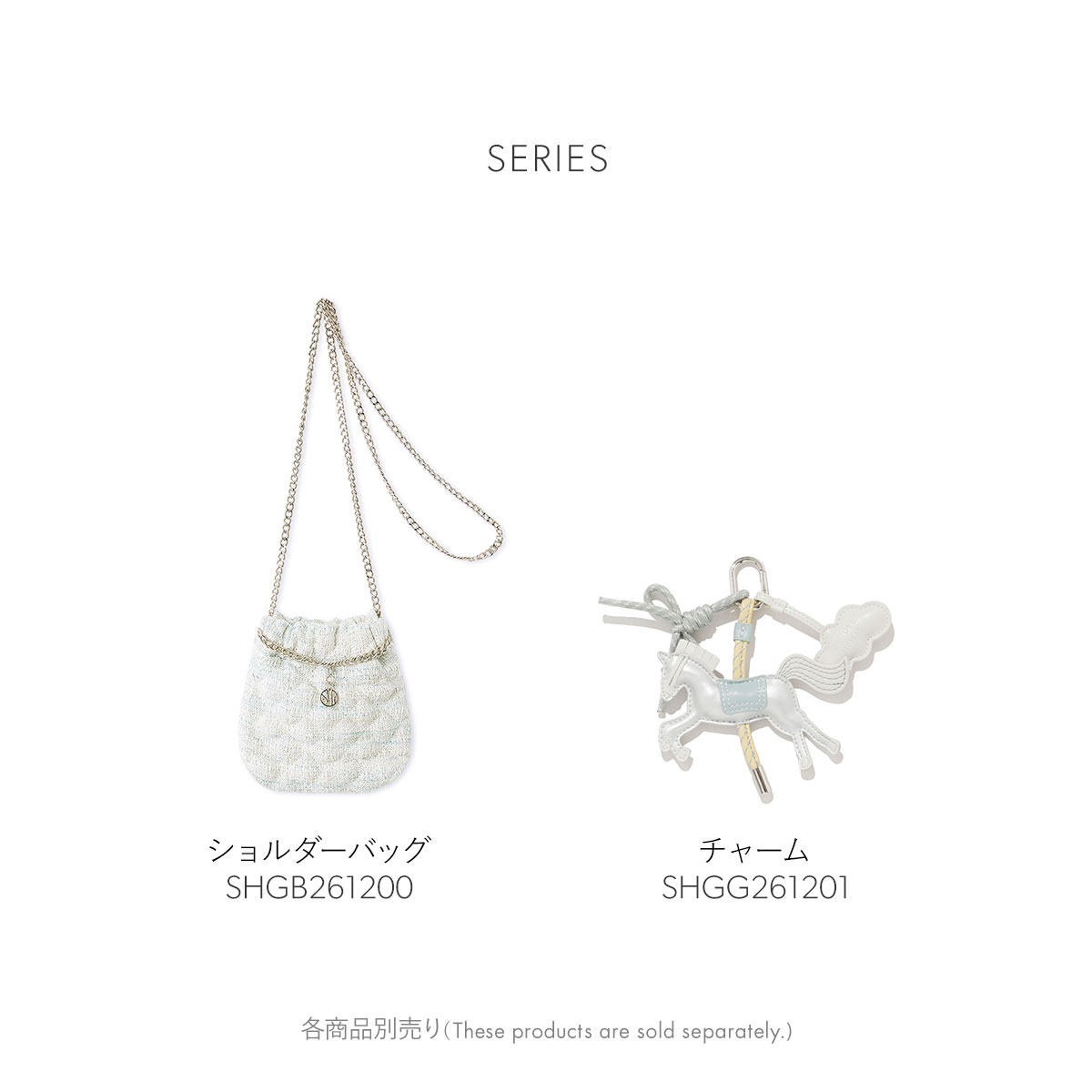 同シリーズのカルーセルチャーム(B52SHGG261201)とカラー連動しているので、アクセントに付けるとキュートです。