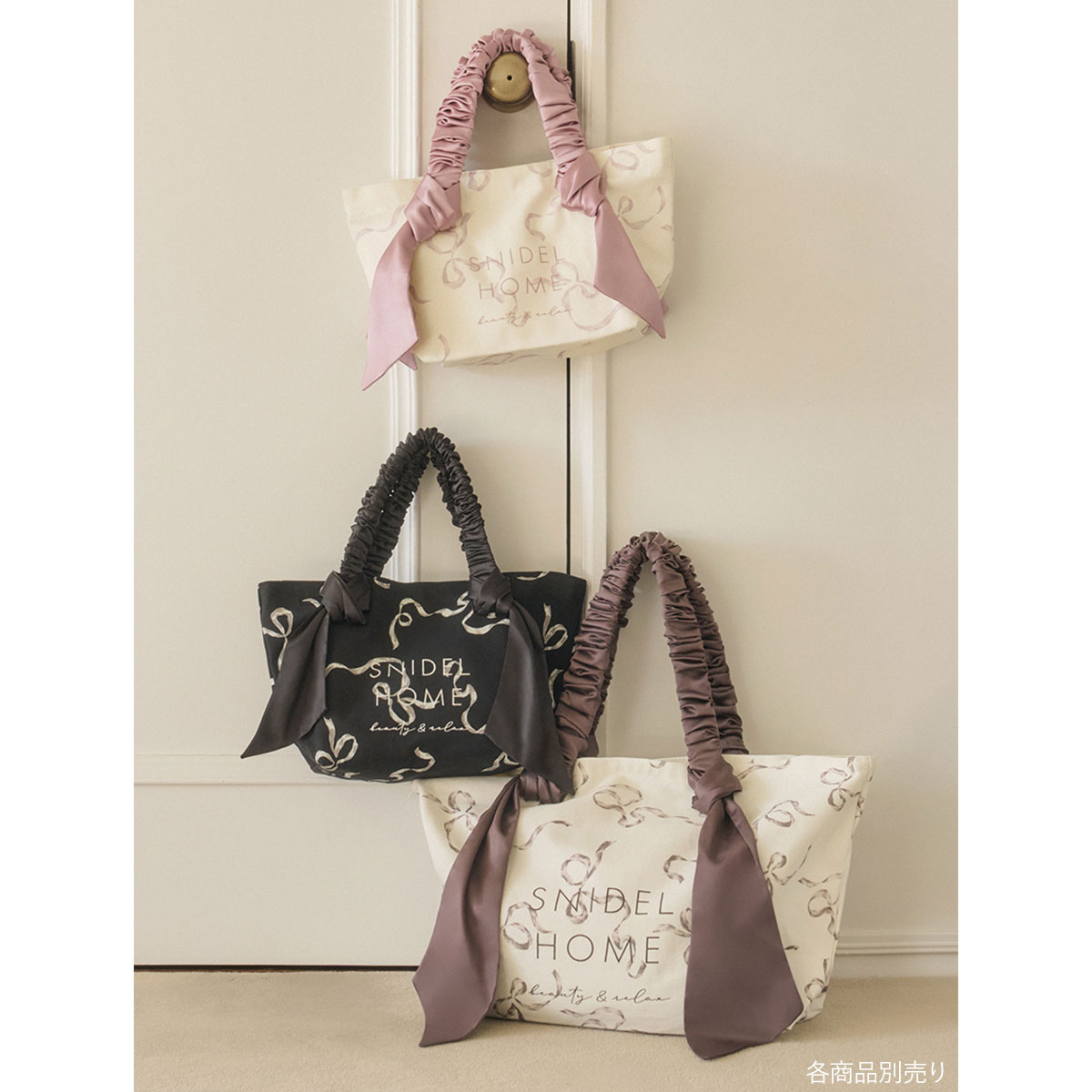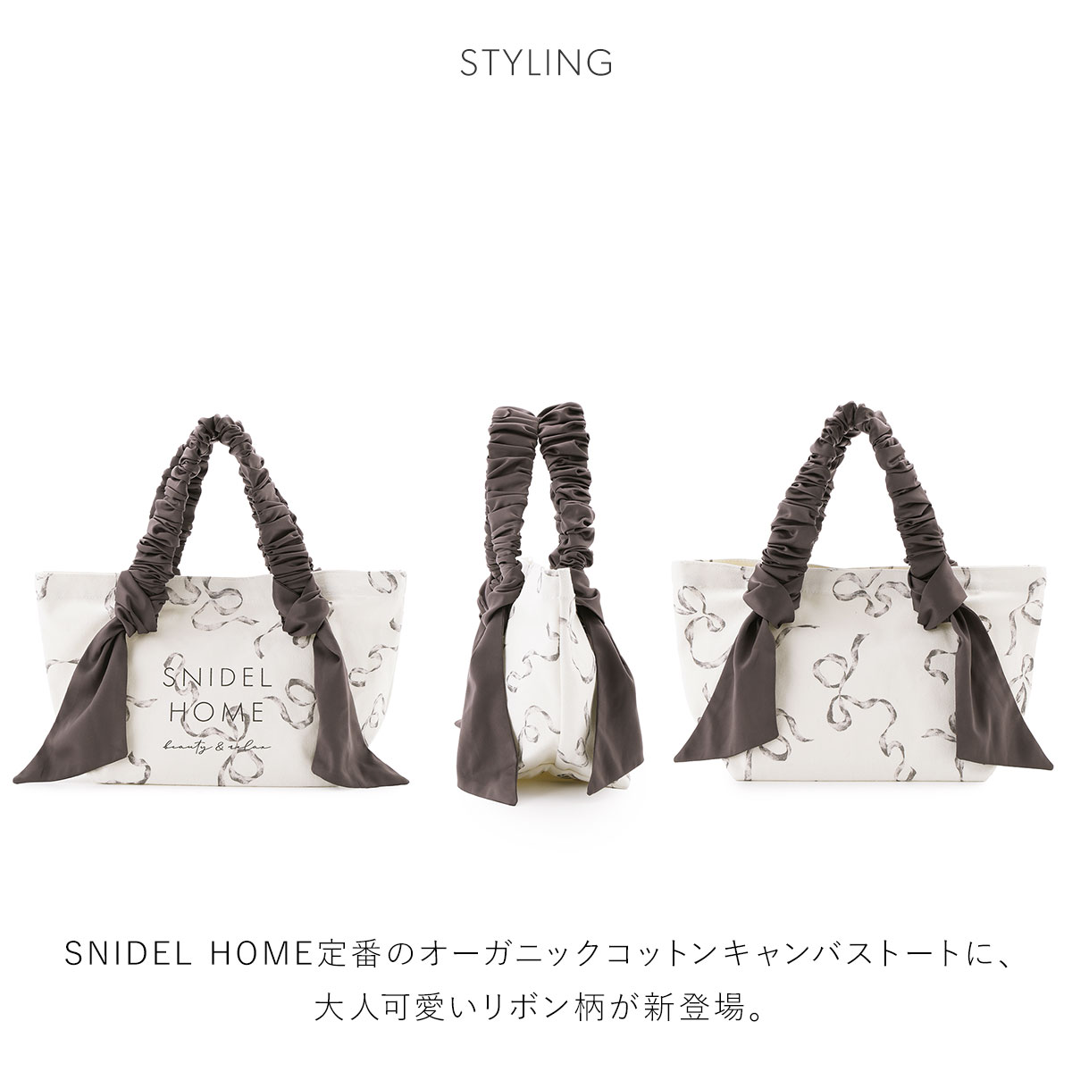 SNIDEL HOME定番のオーガニックコットンキャンバストートに、大人可愛いリボン柄が新登場。