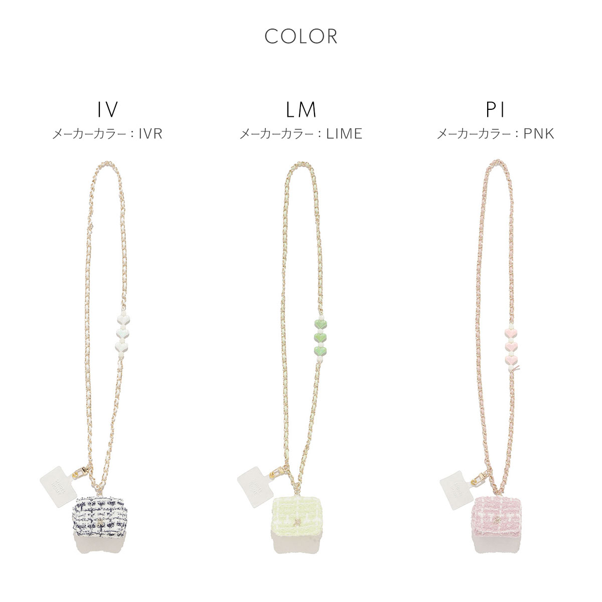 | カラー | IV-アイボリー、LM-ライム、PI-ピンク |
