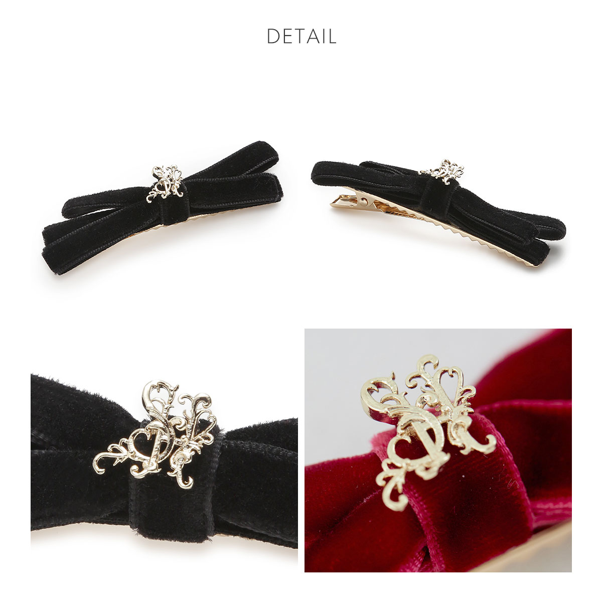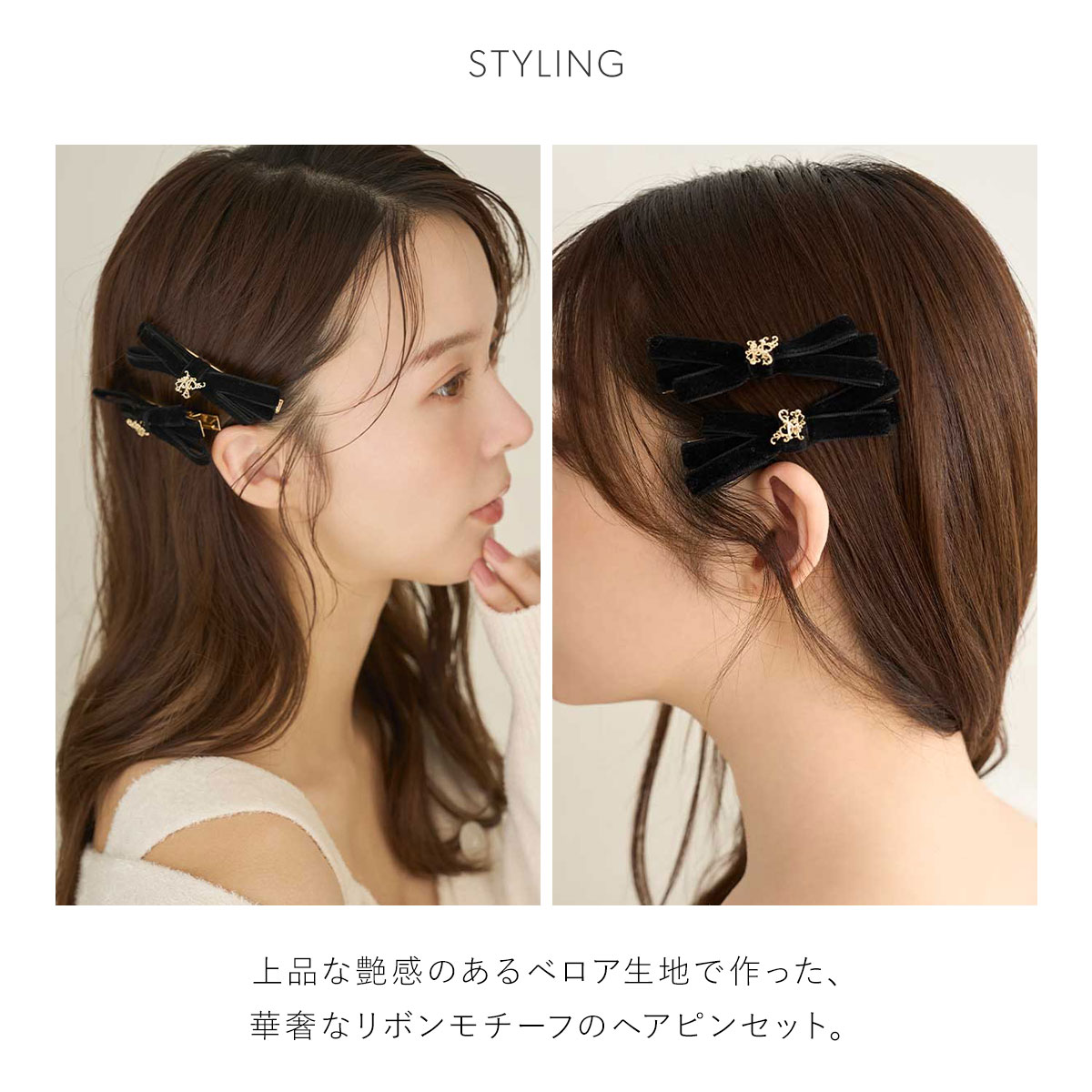 スナイデルホーム★品のあるベロア素材のリボンヘアピンセット