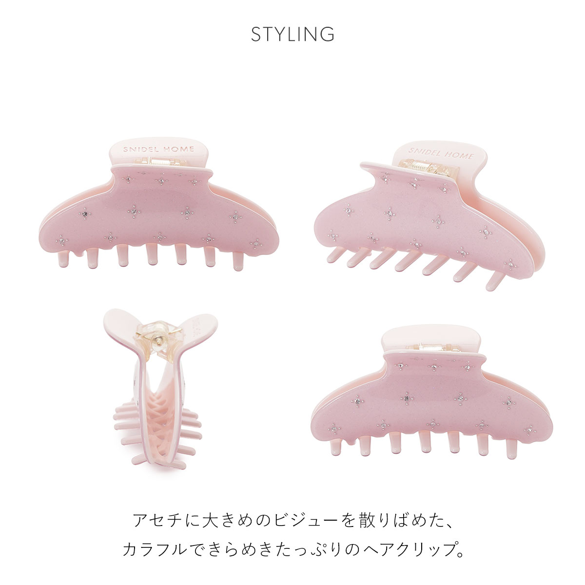 アセチに大きめのビジューを散りばめた、カラフルできらめきたっぷりのヘアクリップ。