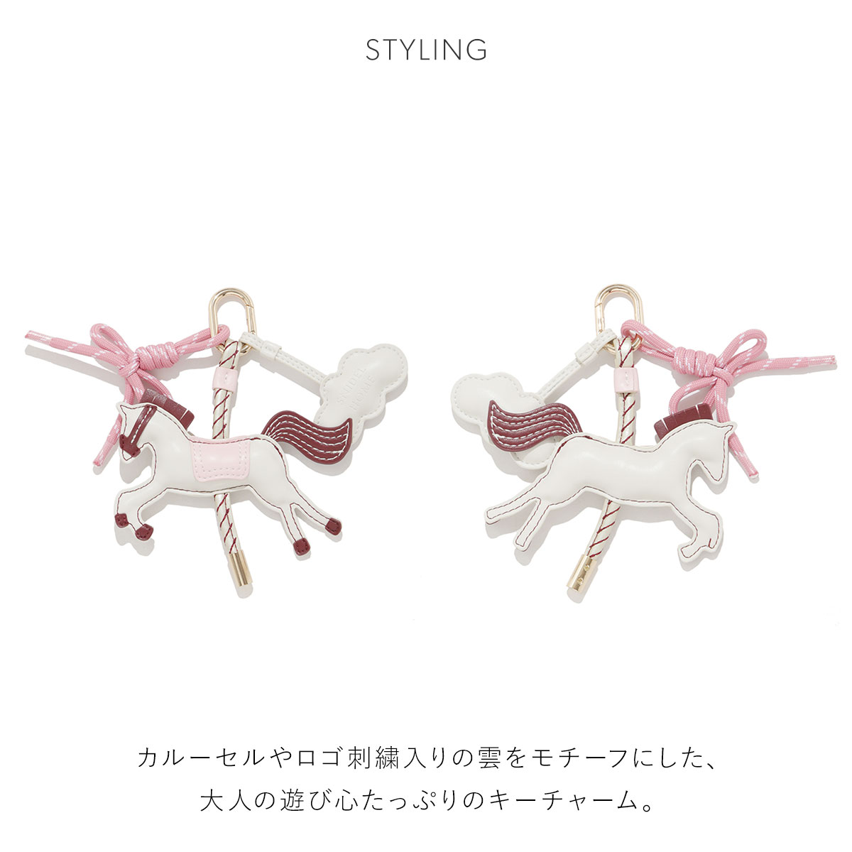 こちらは、カルーセルやロゴ刺繍入りの雲をモチーフにした、大人の遊び心たっぷりのキーチャームです。