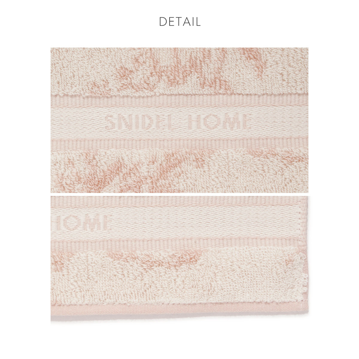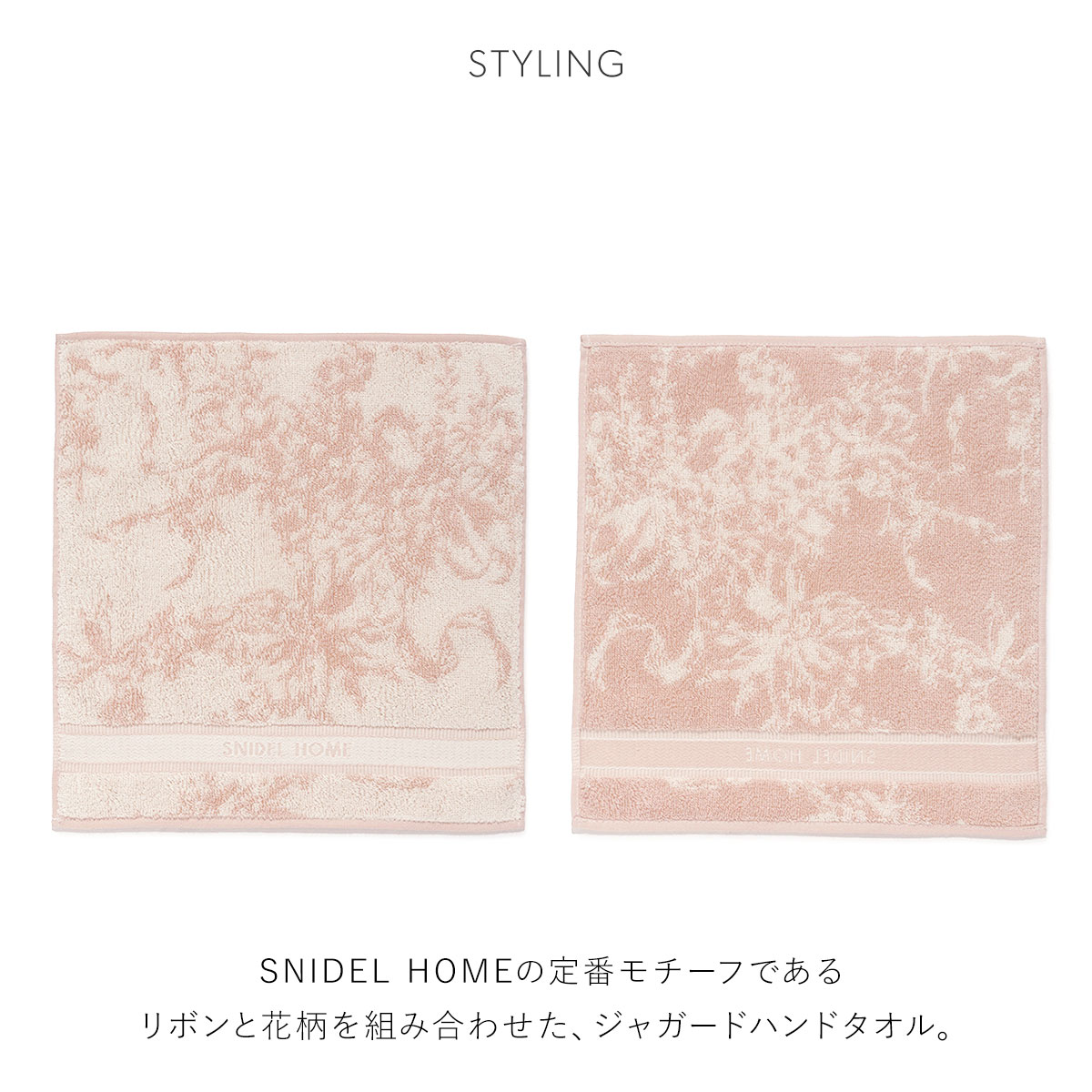 SNIDEL HOMEの定番モチーフであるリボンと花柄を組み合わせた、コットン100%の柔らかなジャガードハンドタオル。
