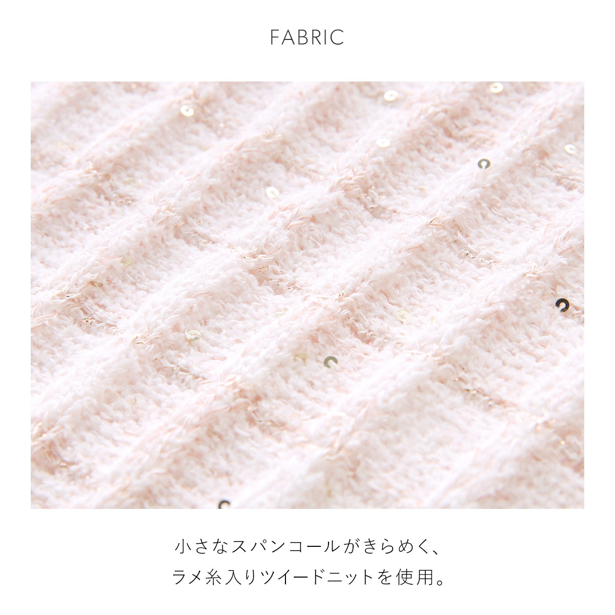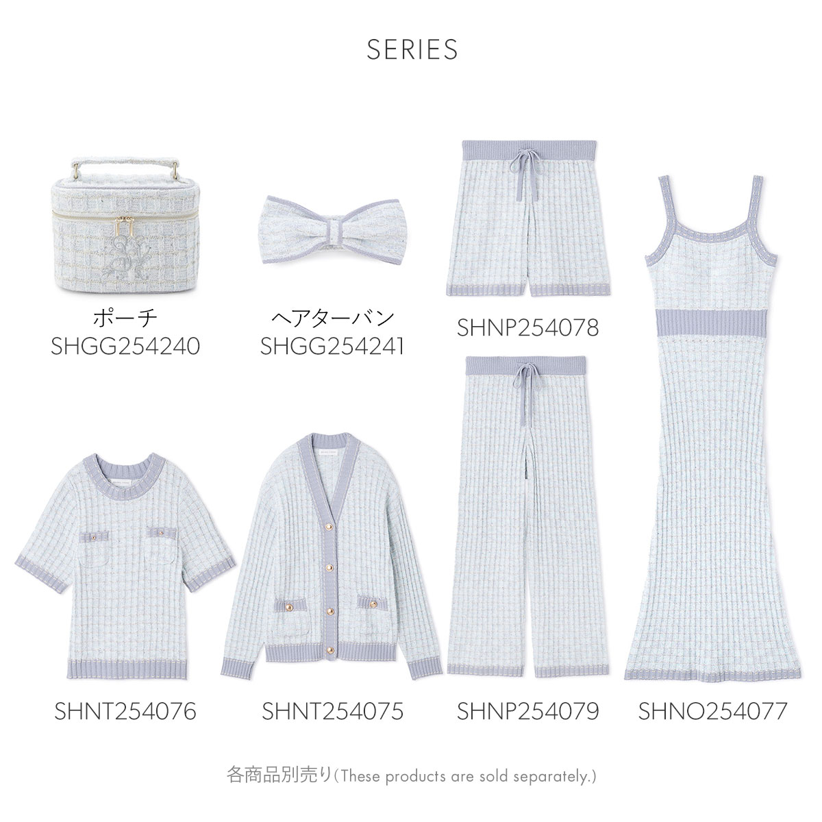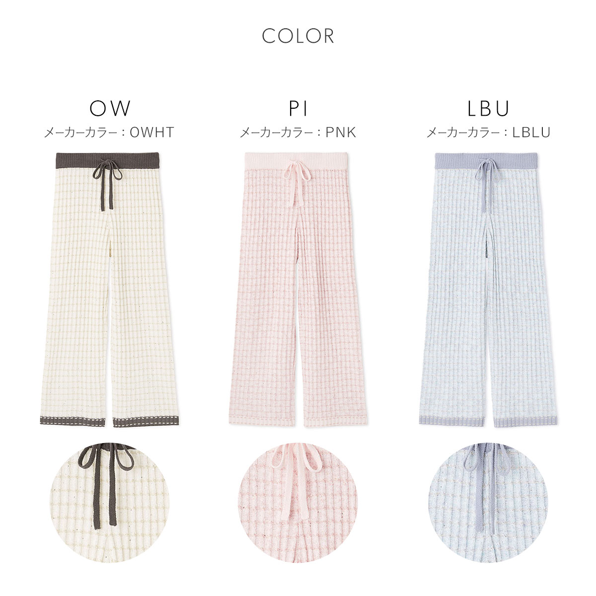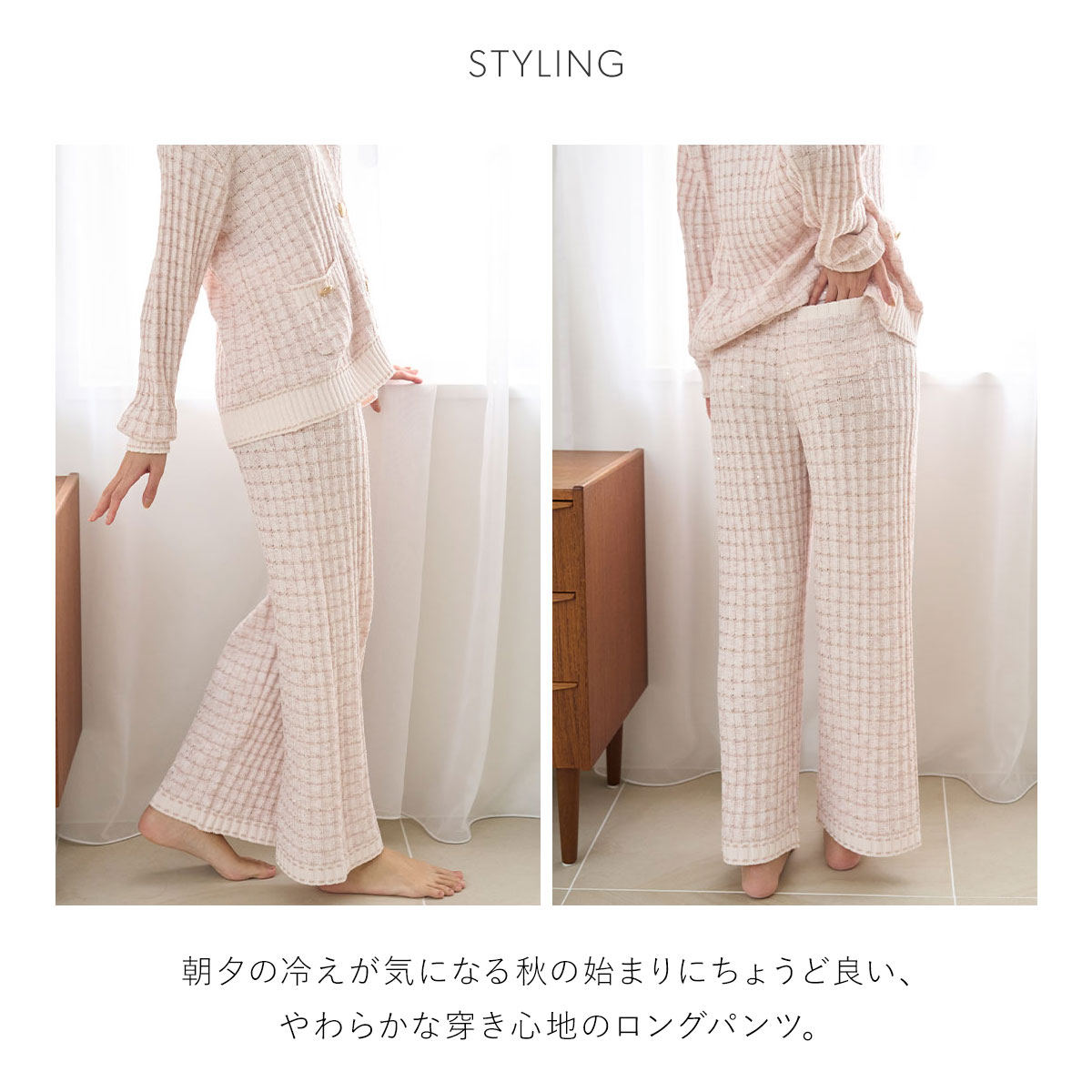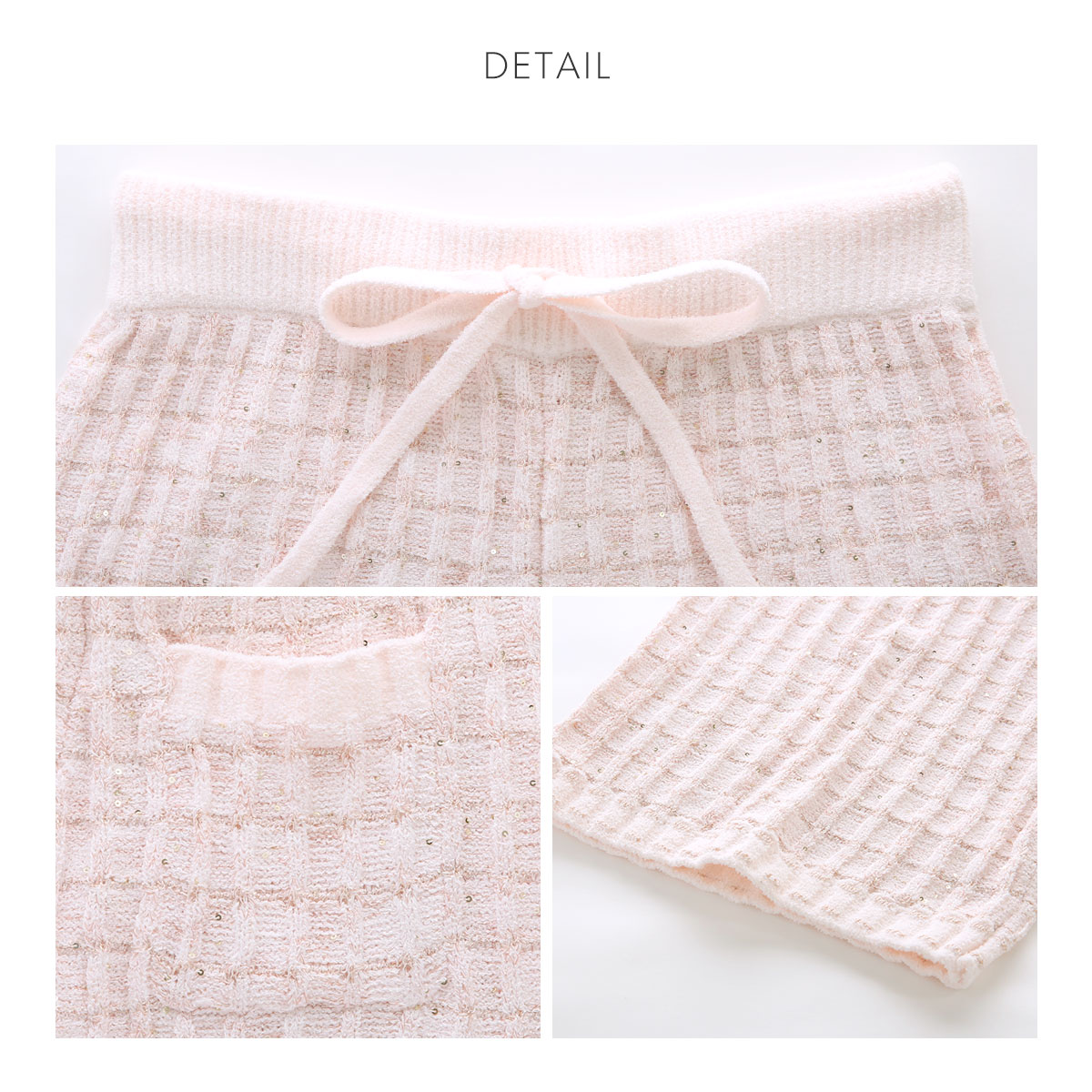 小さなスパンコールがきらめく、ラメツイードニットを使用した、大人っぽく品の良いルームウェアシリーズです。