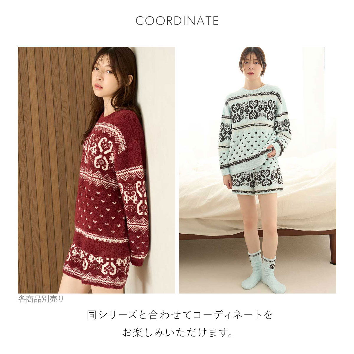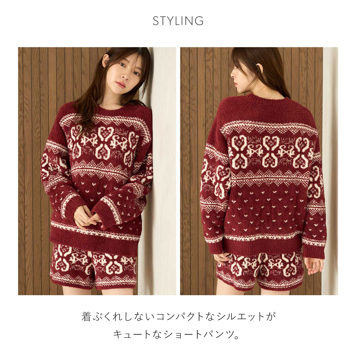 SNIDEL HOMEのイニシャルやハート模様などを取り入れた、コージーなノルディック柄ニットシリーズ。