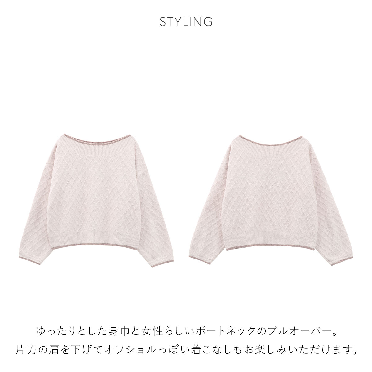 ゆったりとした身幅と女性らしいボートネックのデザインがポイントです。