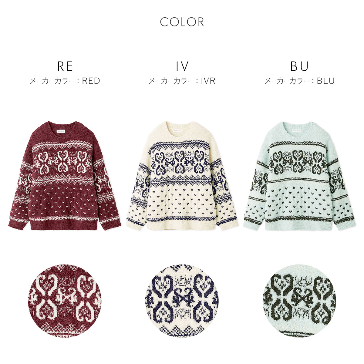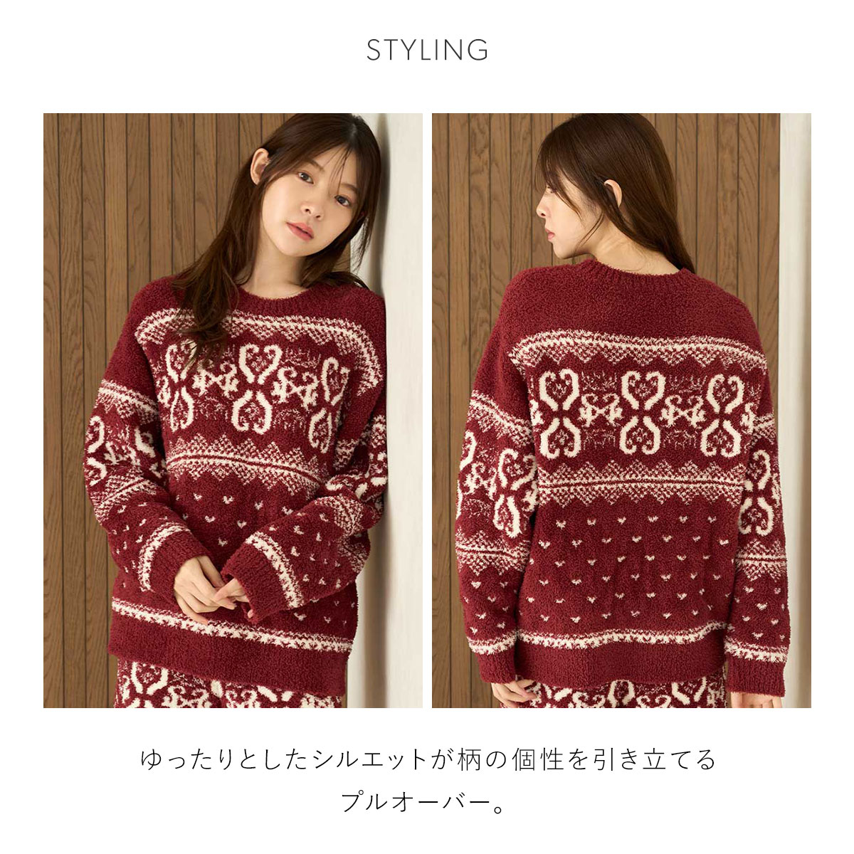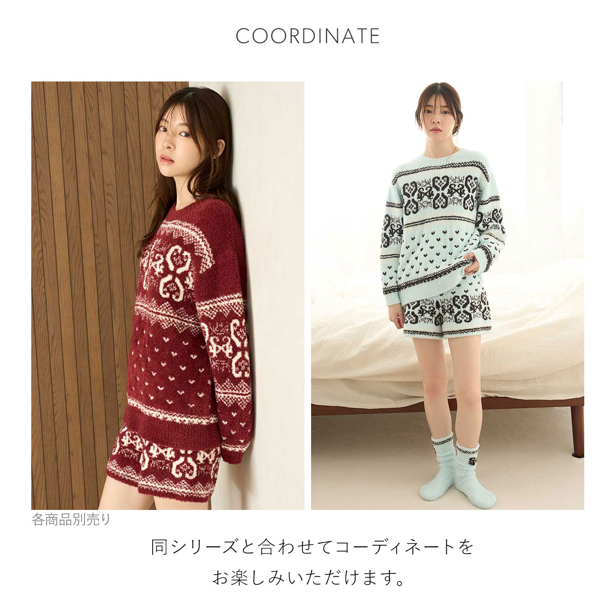 SNIDEL HOMEのイニシャルやハート模様などを取り入れた、コージーなノルディック柄ニットシリーズ。