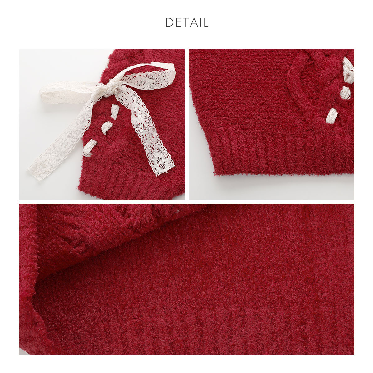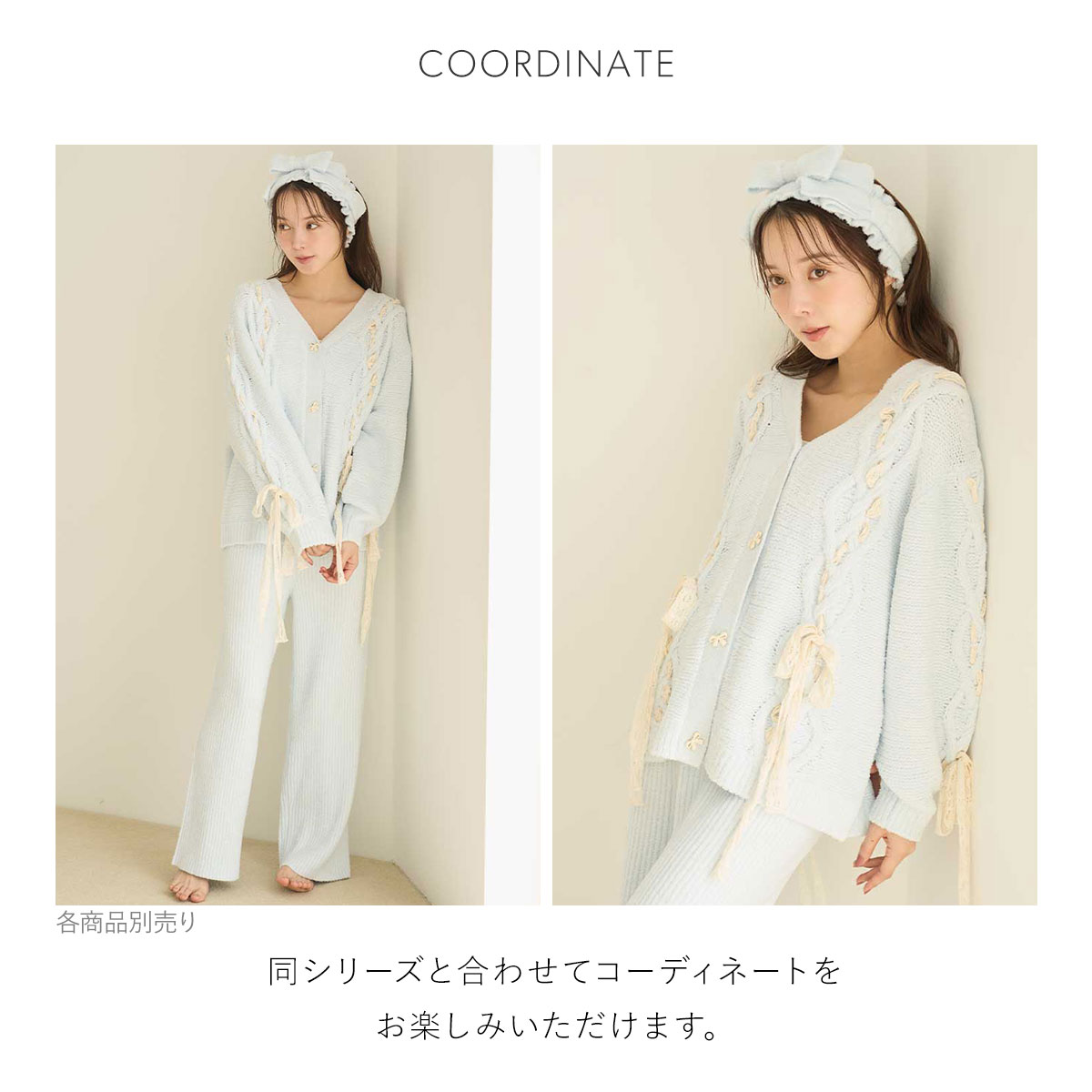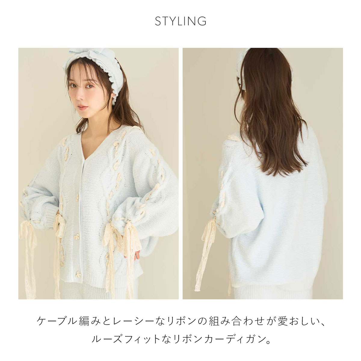 ざっくりしたケーブル編みとレーシーなリボンの組み合わせが愛おしい、ルーズフィットなリボンカーディガン。