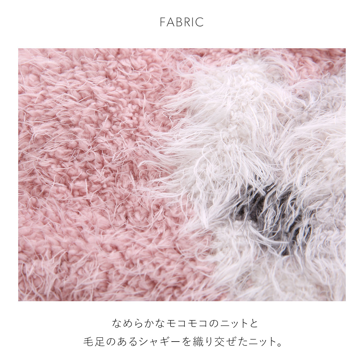 こちらは、なめらかなモコモコのニット毛足のあるシャギーを織り交ぜたニットプルオーバーです。