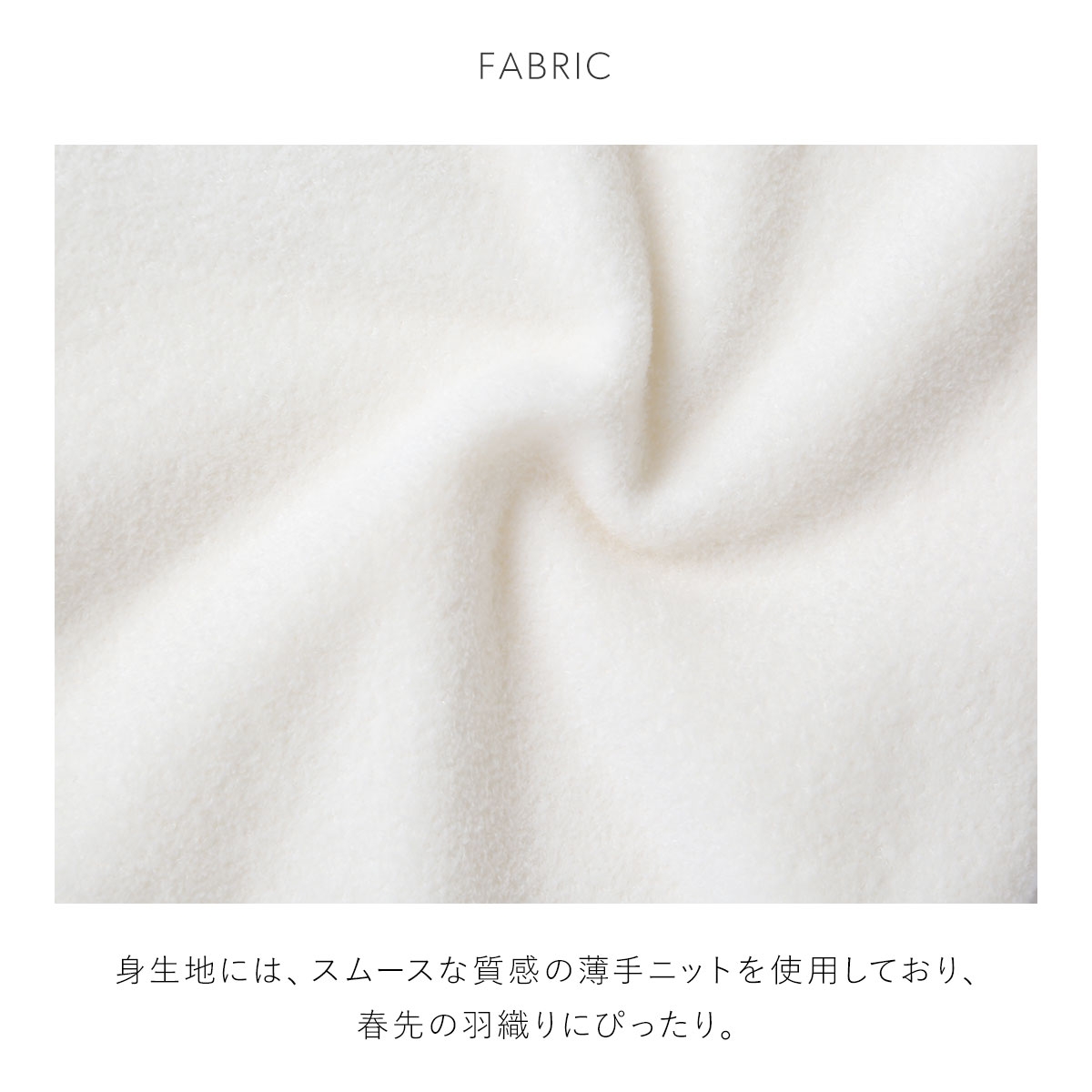 身生地には、スムースな質感の薄手ニットを使用しており、春先の羽織りにぴったり。