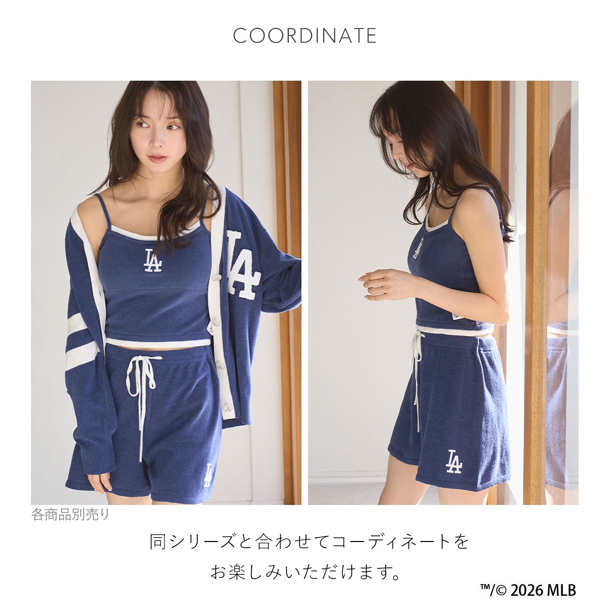 各球団のロゴをアクセントにした、スポーティかつパワフルなデザインを、SNIDEL HOMEらしいトレンド感のあるルームウェアにアレンジしています。
