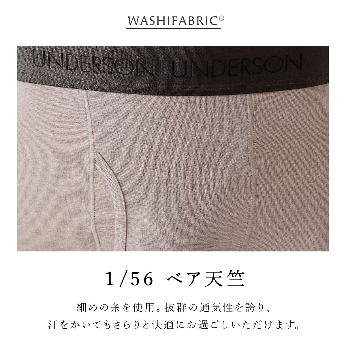 身生地は、細めの糸を使用して薄手に仕上げた、『WASHIFABRIC(R)』1/56ベア天竺。