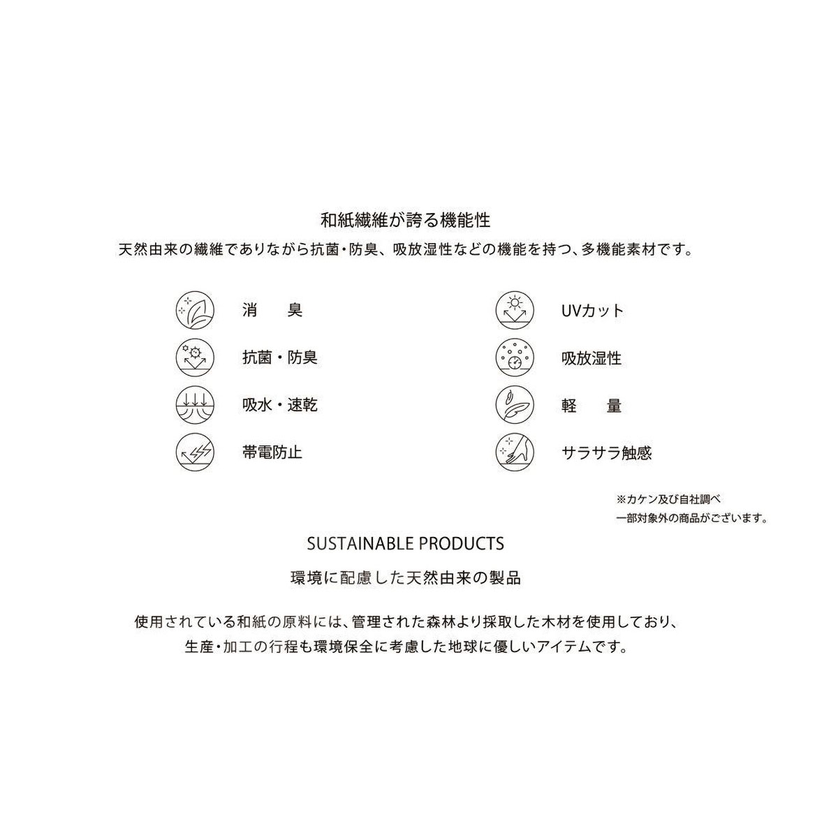 | 素 材 | 本体:分類外繊維(和紙)75% ポリエステル22% ポリウレタン3% ゴム部分:ナイロン60% ポリエステル32% ポリウレタン8% |
