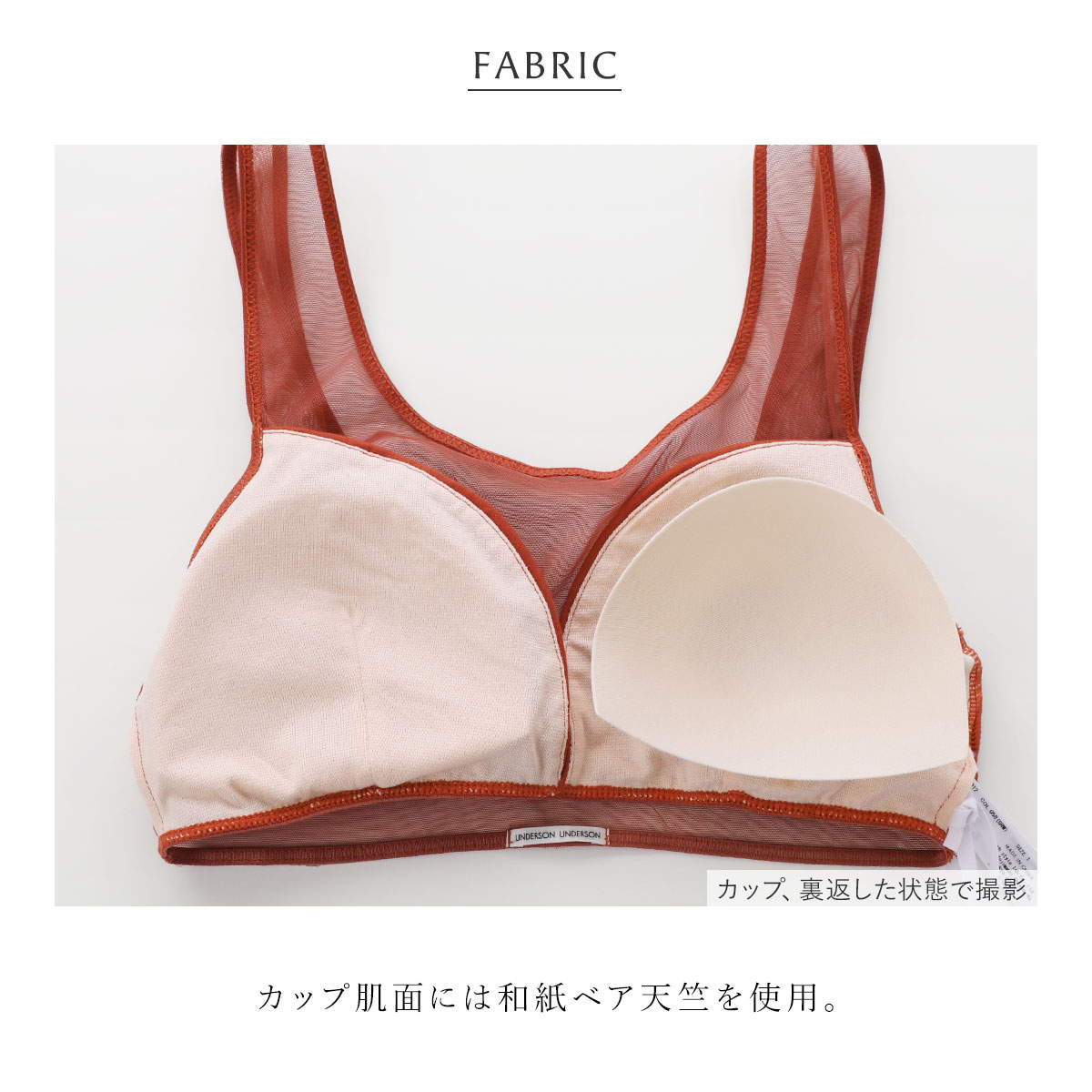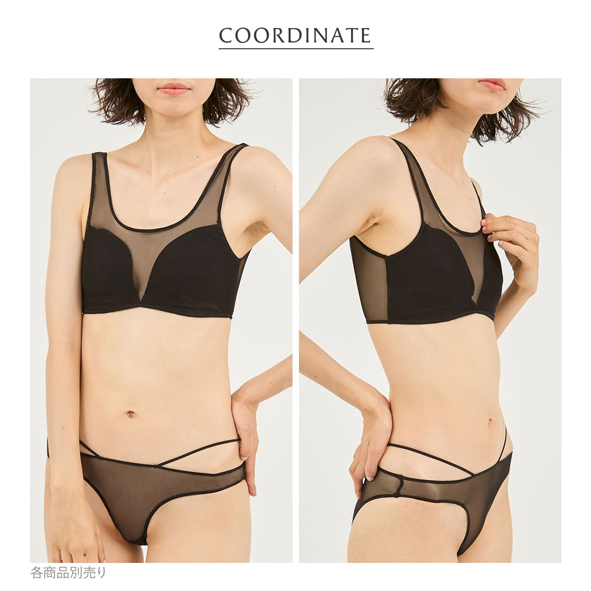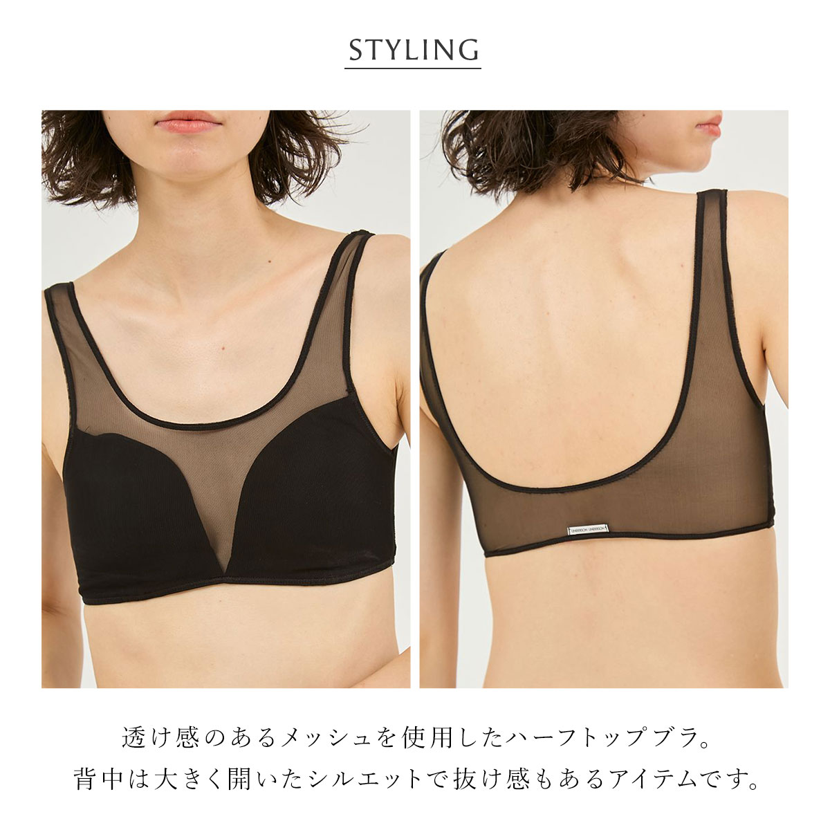 透け感のあるメッシュを使用したハーフトップブラ。