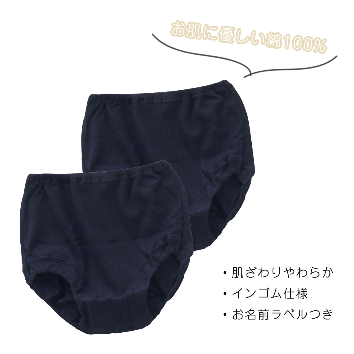 100cmから165cmまでの幅広いサイズを揃えています。スカートの下にはいて、防犯や冷え対策に!内側にはお名前を書けるラベル付きです。