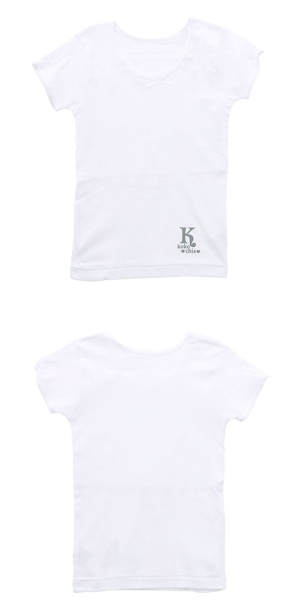 衿もとにリボンのついたシンプルデザイン。裾部分のロゴがアクセントに。同色の2枚セットなのでデイリーからスクールまで広く活躍します。胸元は裏打ちつきで、トップが目立ち始めたデリケートなバストをやわらかな素材でやさしくカバーします。