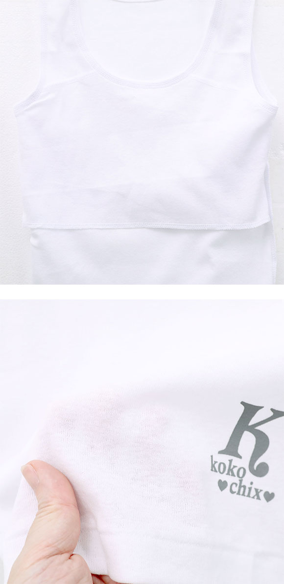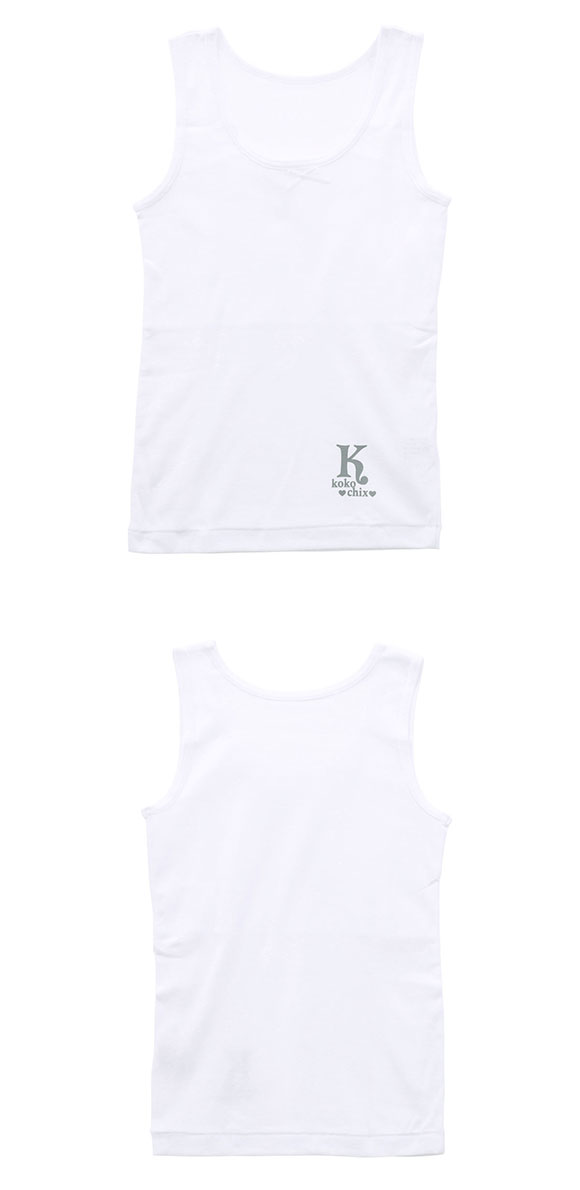 衿もとにリボンのついたシンプルデザイン。裾部分のロゴがアクセントに。同色の2枚セットなのでデイリーからスクールまで広く活躍します。胸元は裏打ちつきで、トップが目立ち始めたデリケートなバストをやわらかな素材でやさしくカバーします。